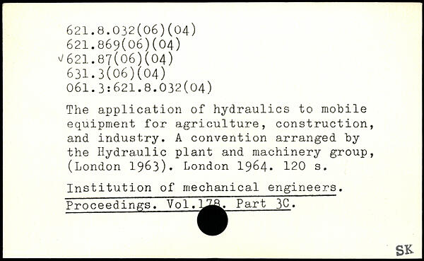 The application of hydraulics to mobile equipment for agriculture, construction, and industry. A convention arranged by the Hydraulic plant and machinery group, (