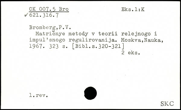 Matricnye metody v teorii relejnogo i impul'snogo regulirovanija.