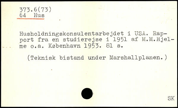 Husholdningskonsulentarbejdet i USA. Rapport fra en studierejse i 1951 af M.M.Hjel-me o.a.