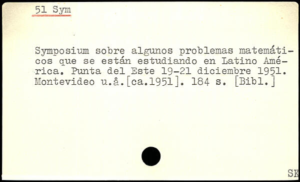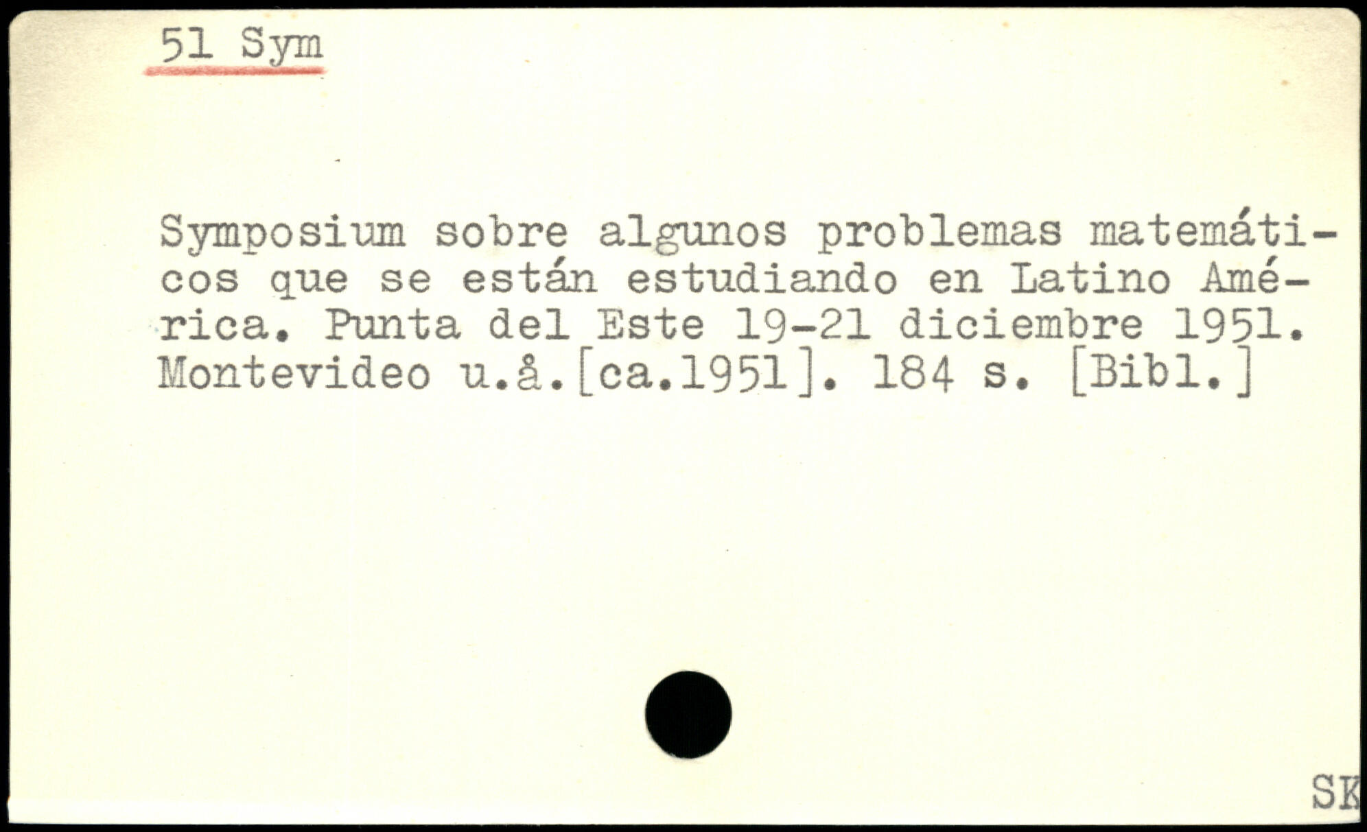 Symposium sobre algunos problemas matemåti-cos que se estån estudiando en Latino America, Panta del Este 19-21 diciembre 1951. Montevideo u.å.[ca.1951].
