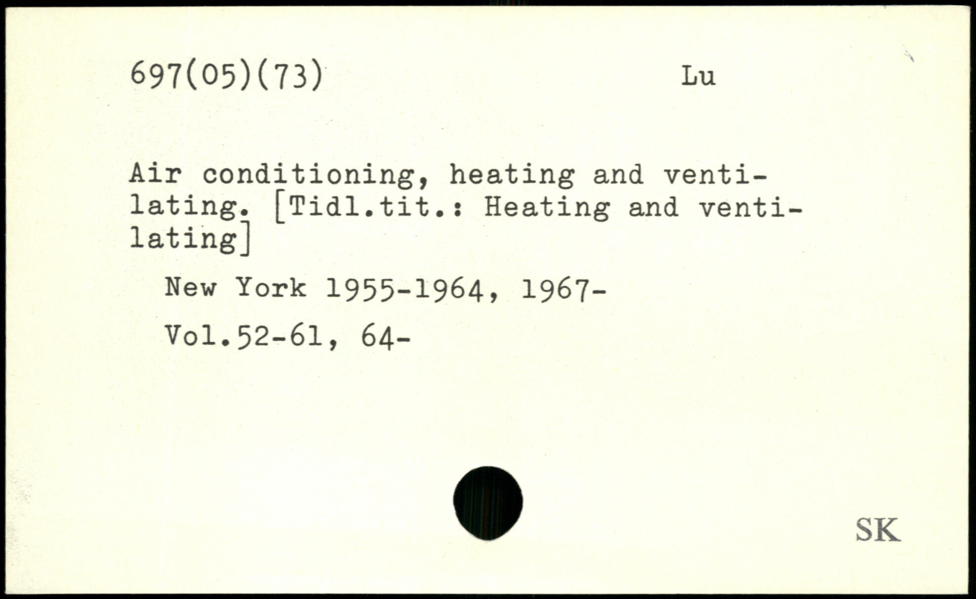 Air conditioning, heating and ventilating. [Tidl.tit.i Heating and ventilating]