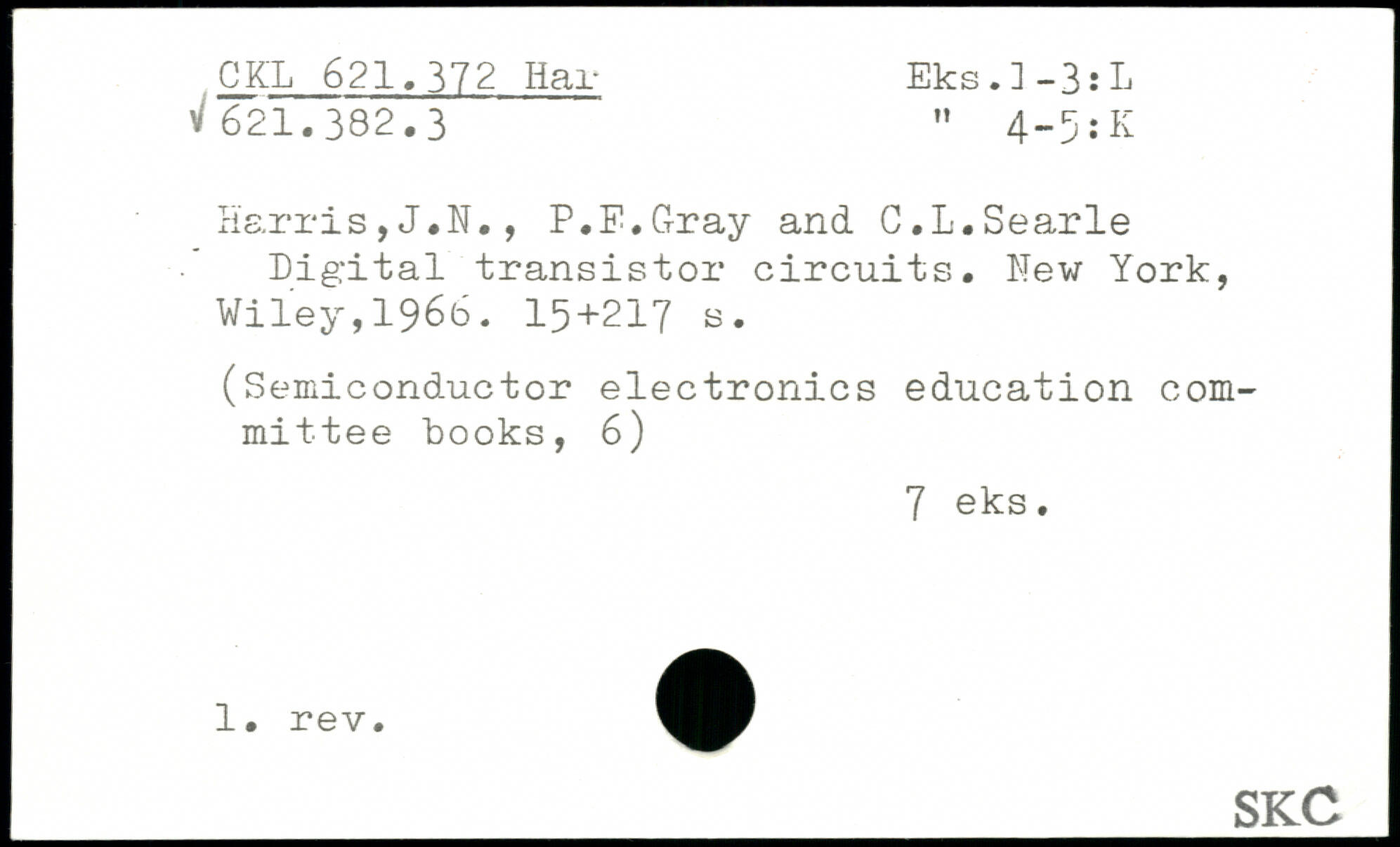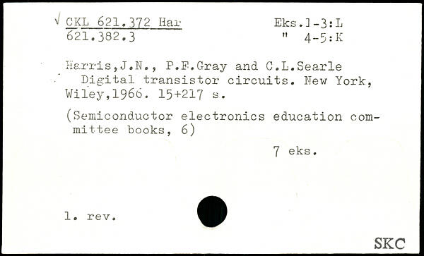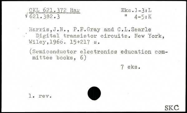Harris,J.N., P.F.G-ray and C.L.Searle Digital transistor circuits.