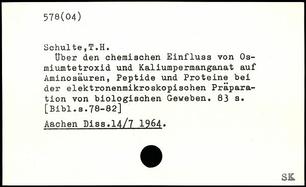 Uber den chemischen Einfluss von Os-miumtetroxid und Kaliumpermanganat auf Aminosäuren, Peptide und Proteine bei der elektronenmikroskopisehen Präparation von biologischen Geweben.