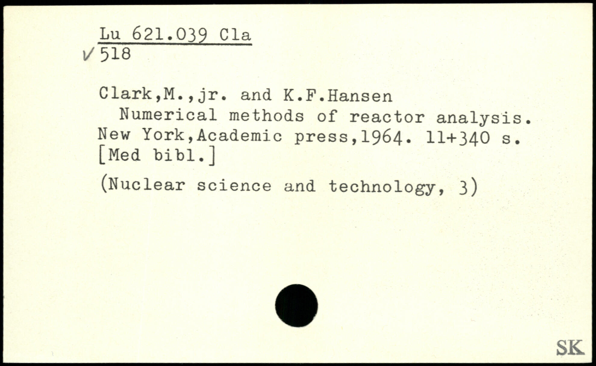 Clark,M.,jr. and K.F.Hansen Numerical methods of reactor analysis.