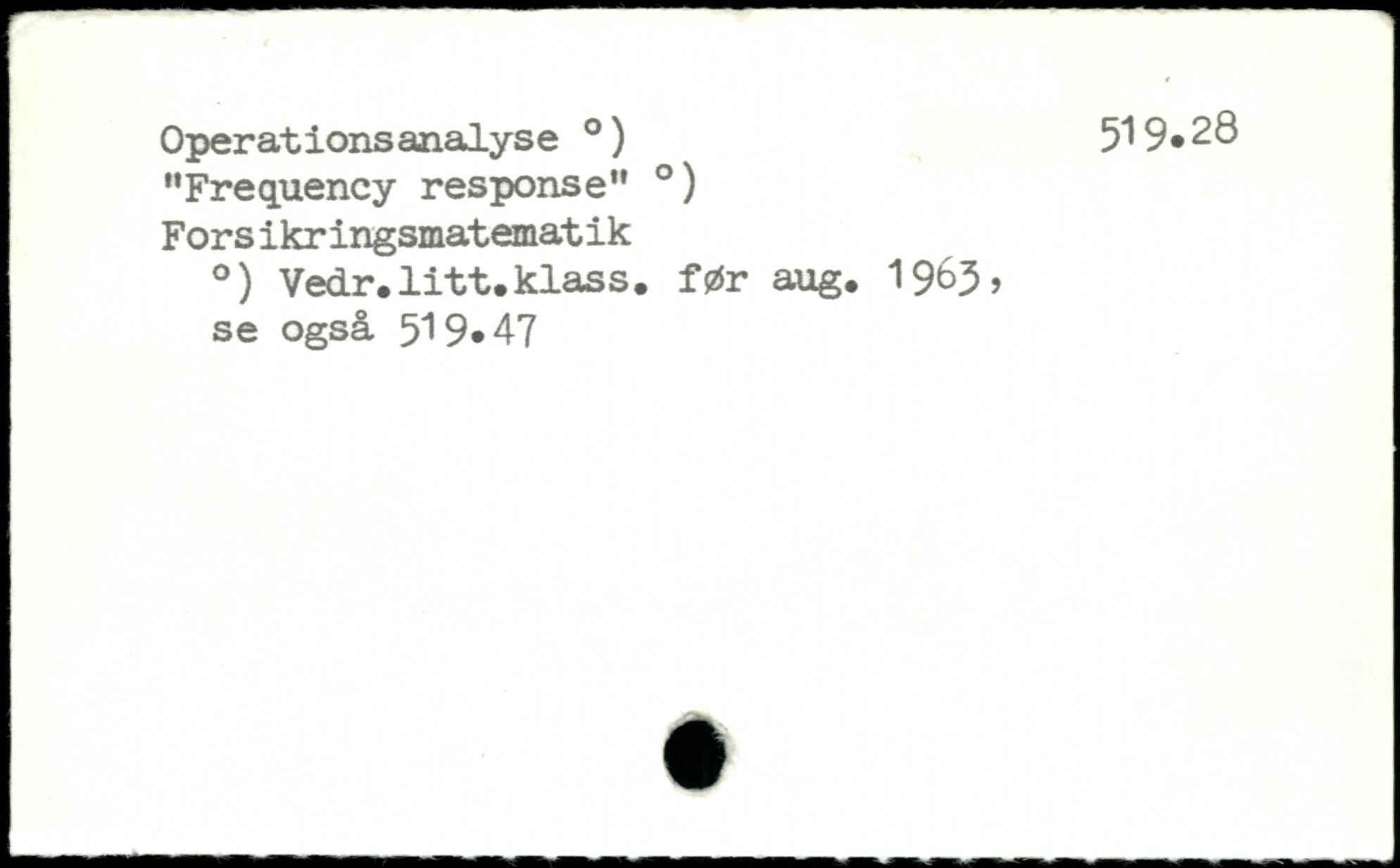 "Frequency response" .) Fors ikringsmatematik .) Vedr.litt.klass. før aug. 19^3, se også 519.47