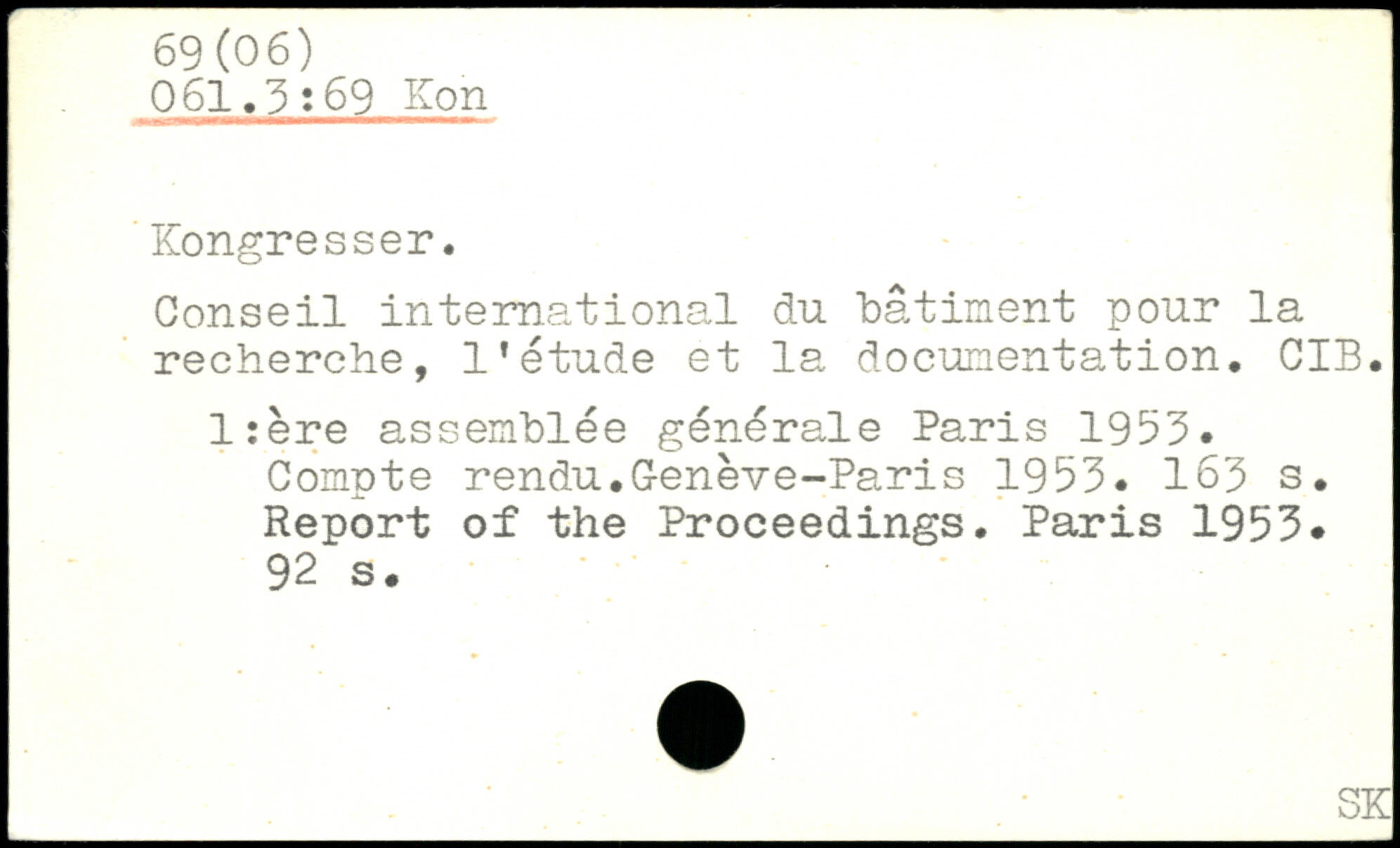 Conseil international du bâtiment pour la recherche, l’étude et la documentation. CIB. l:ère assemblée générale