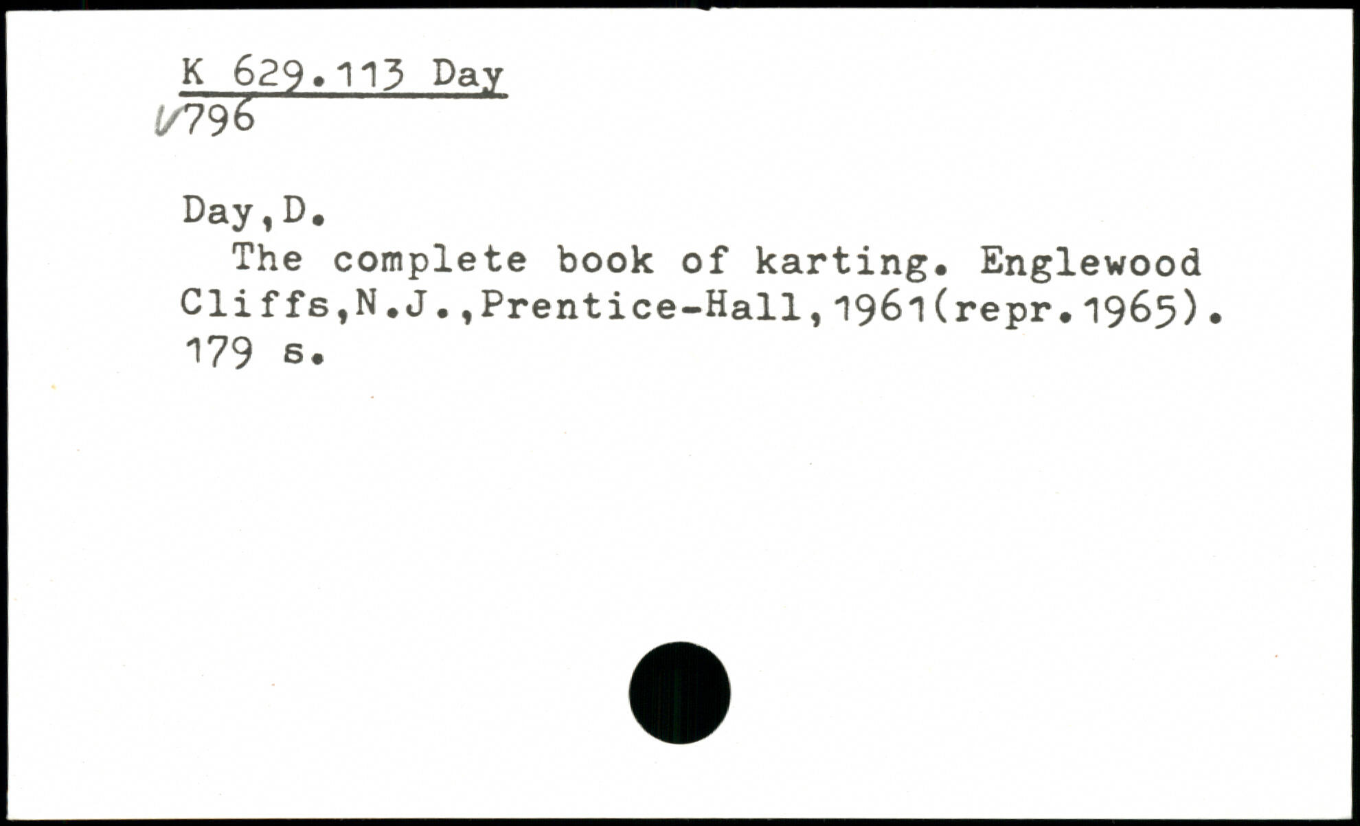 The complete book of karting. Englewood Cliffs,N.J.,Prentice-Hall,196n(repr.1965).