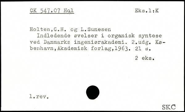 Indledende øvelser i organisk syntese ved Danmarks ingeniørakademi.