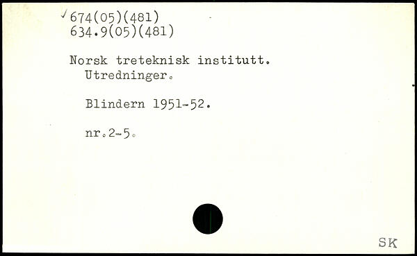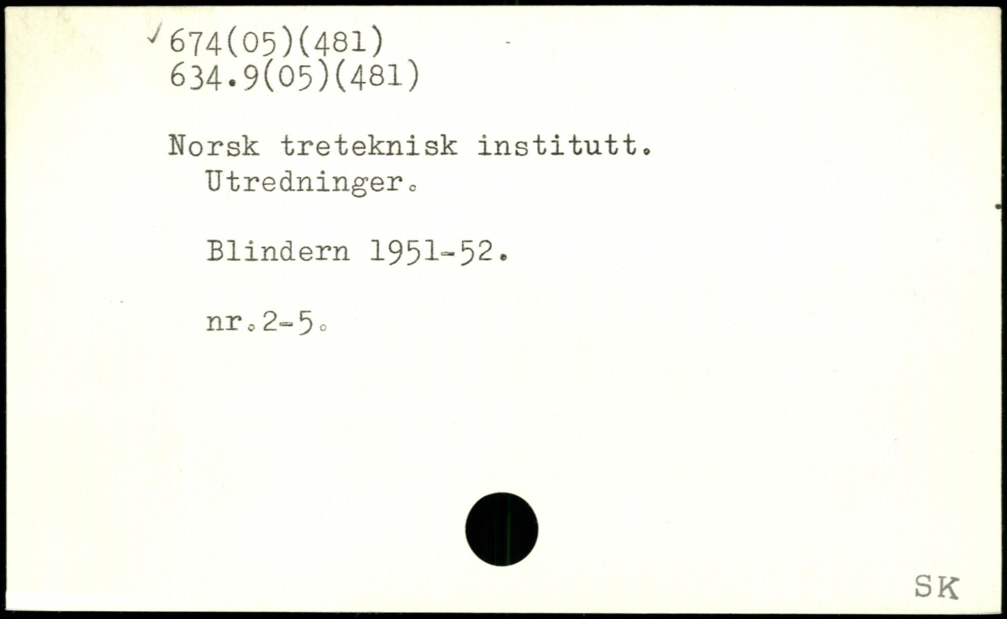 Norsk treteknisk institutt. Utredninger c Blindem 1951-52. nr, 2=5.