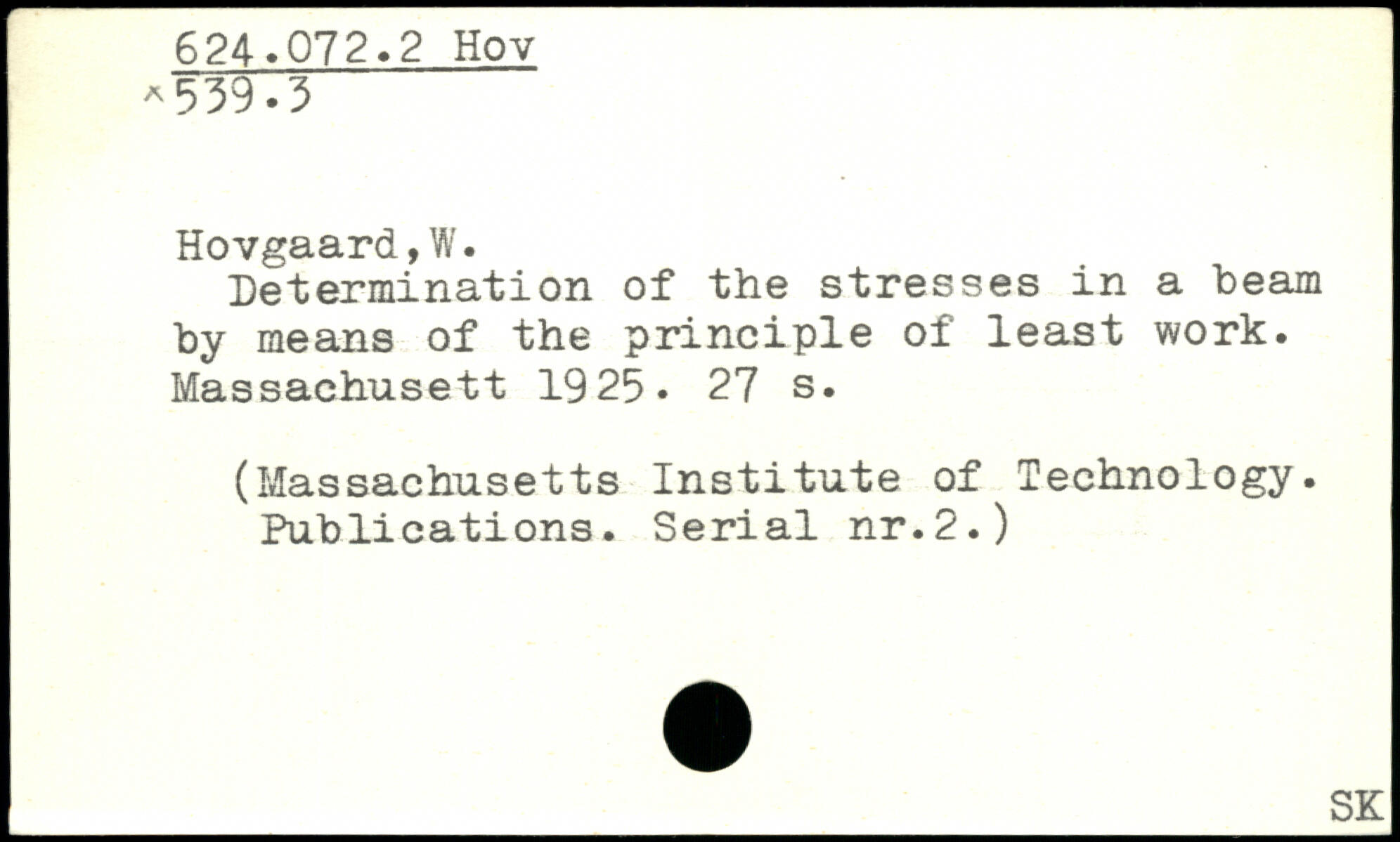 Determination of the stresses in a beam by means of the principle of least work. Massachusett 1925.