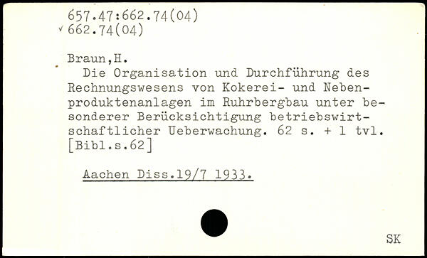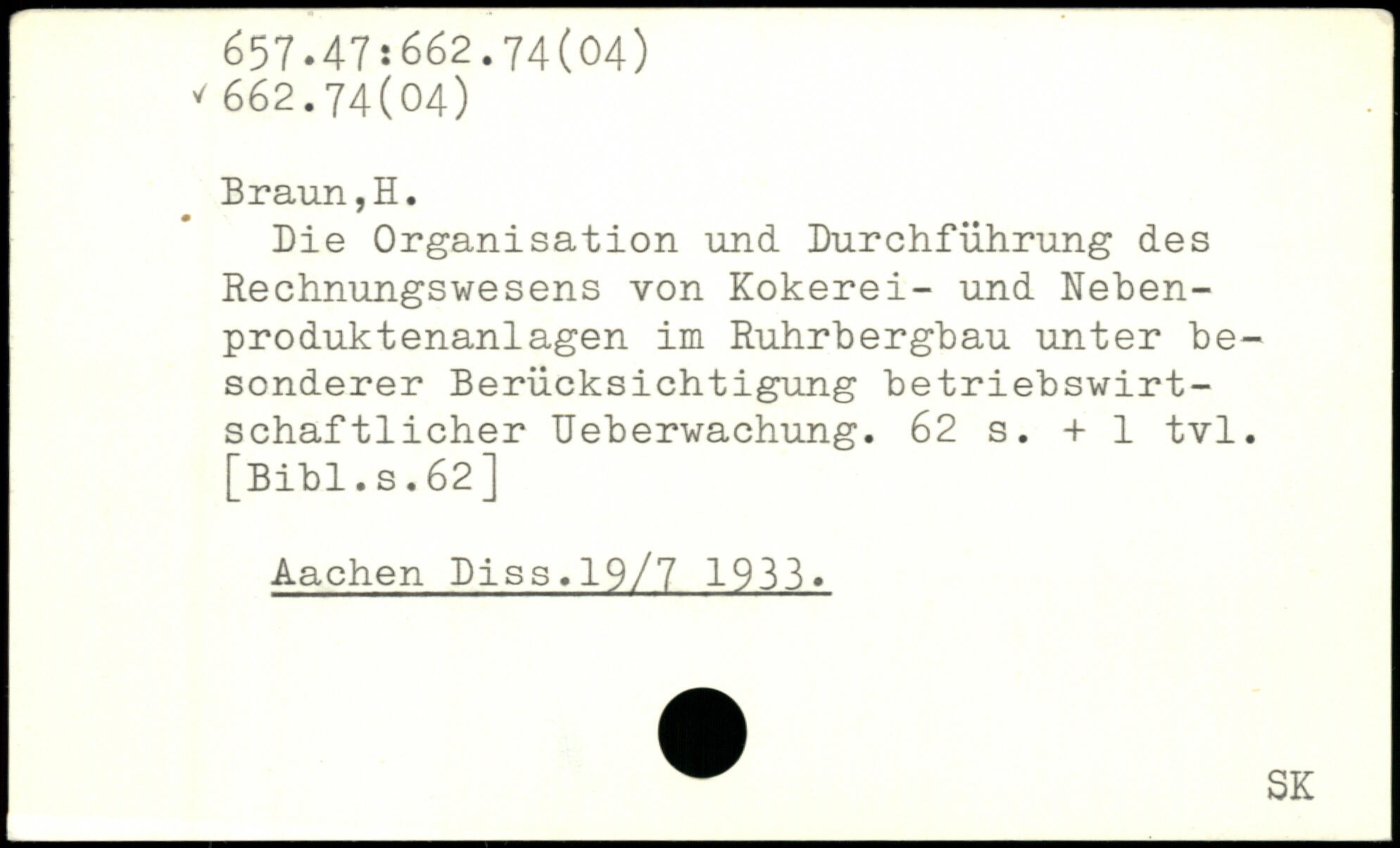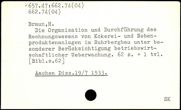 Die Organisation und Durchführung des Rechnungswesens von Kokerei- und Neben-produktenanlagen im Ruhrbergbau unter besonderer Berücksichtigung betriebswirtschaftlicher Ueberwachung.