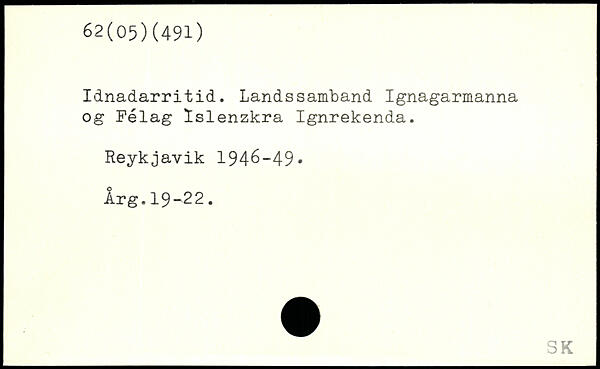 Idnadarritid. Landssamband Ignagarmanna og Félag ïslenzkra Ignrekenda. Reykjavik 1946-49, Arg.19-22.
