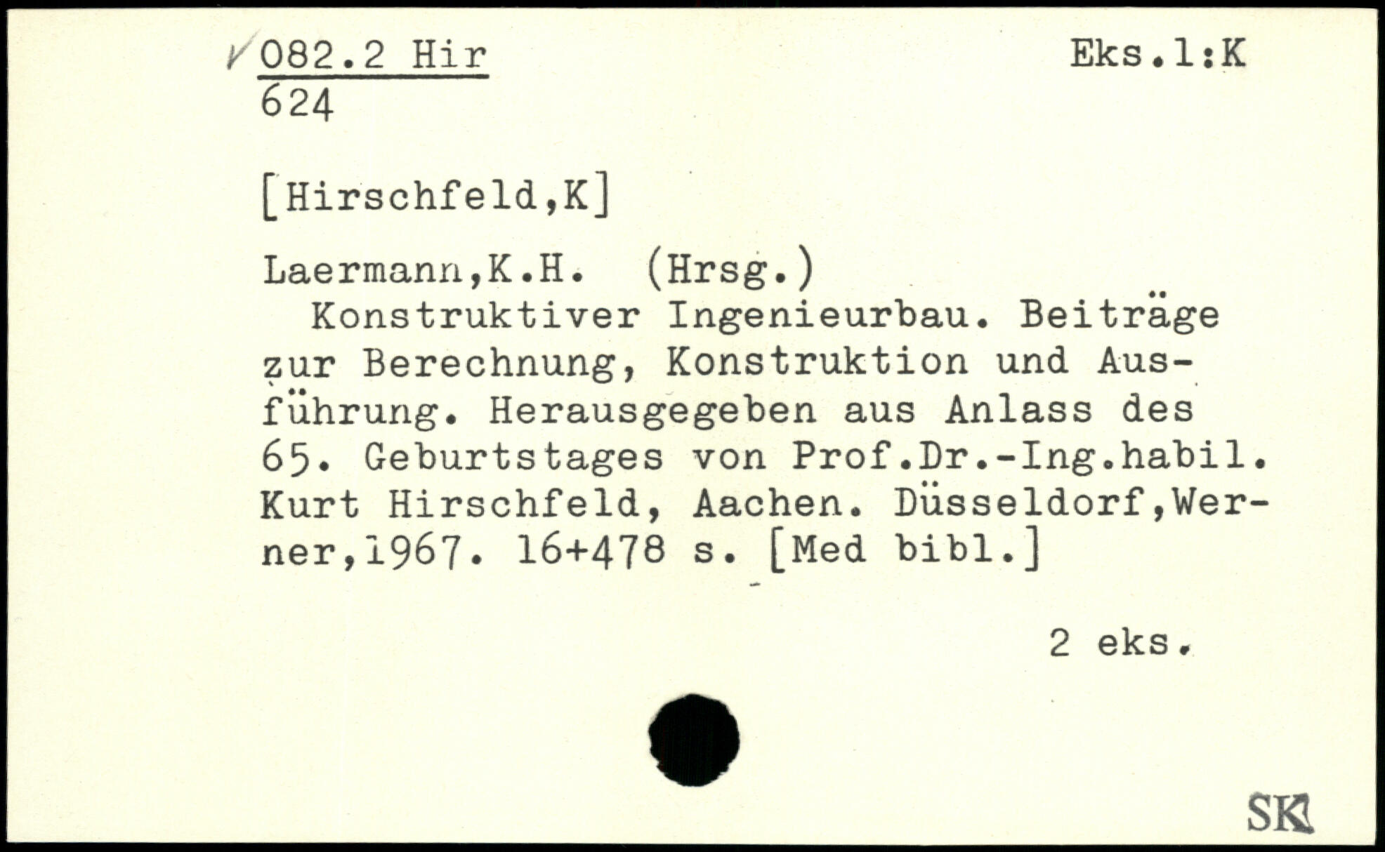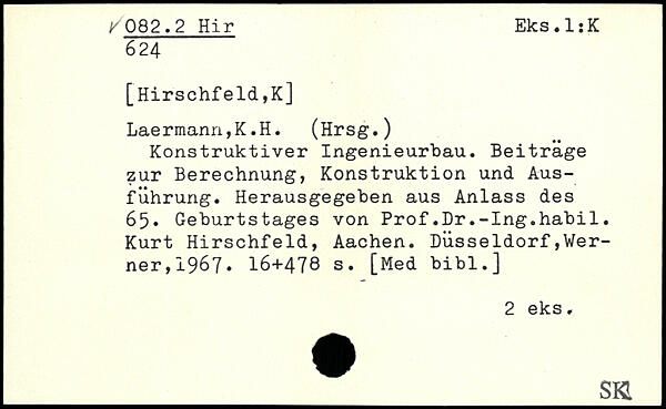 Konstruktiver Ingenieurbau. Beiträge zur Berechnung, Konstruktion und Ausführung. Herausgegeben aus Anlass des 65, Geburtstages von Prof.Dr.-Ing.habil. Kurt Hirschfeld, Aachen.