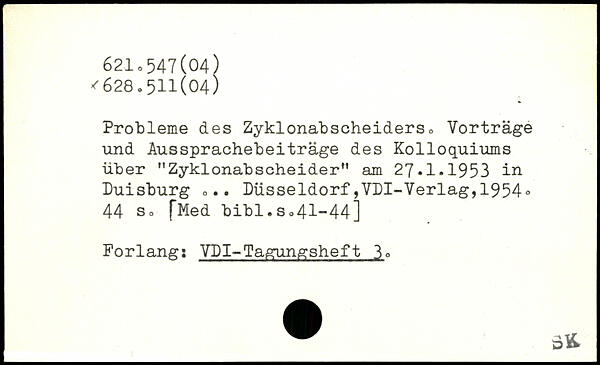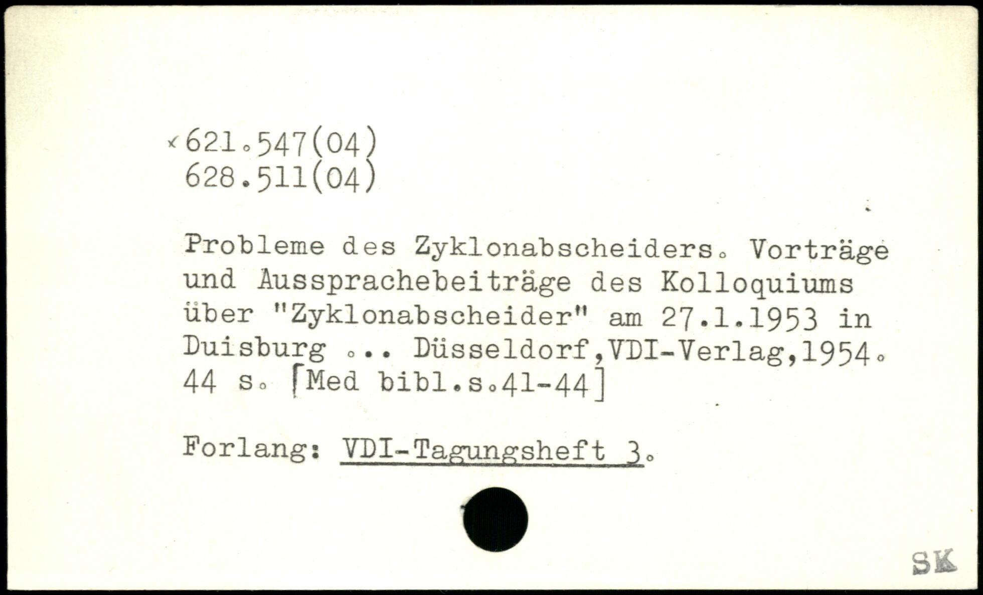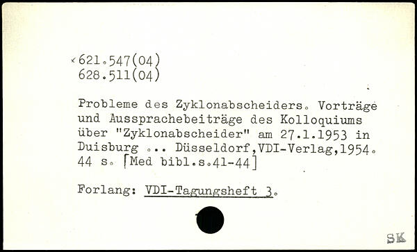 Probleme des Zyklonabscheiders, Vorträge und Aussprachebeiträge des Kolloquiums über "Zyklonabscheider" am 27.1.1953 in