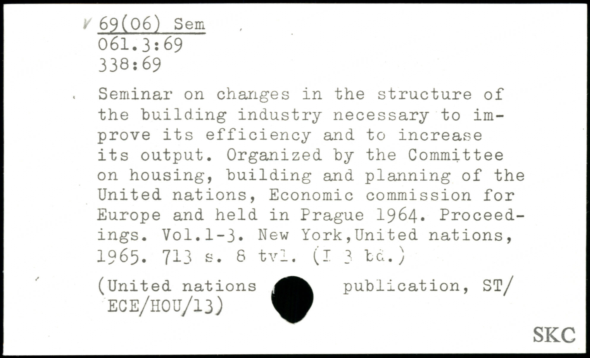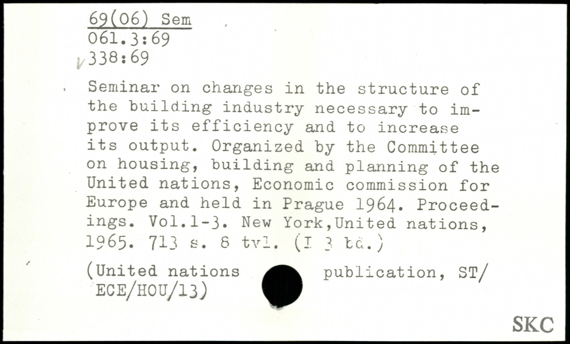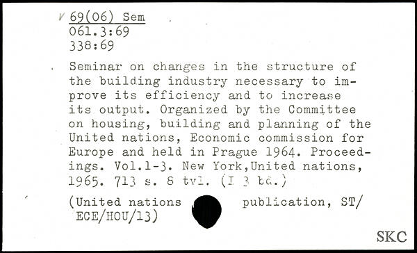 . Seminar on changes in the structure of the building industry necessary to improve its efficiency and to increase its output. Organized by the Committee on housing, building and planning of the United nations, Economic commission for Europe and held in
