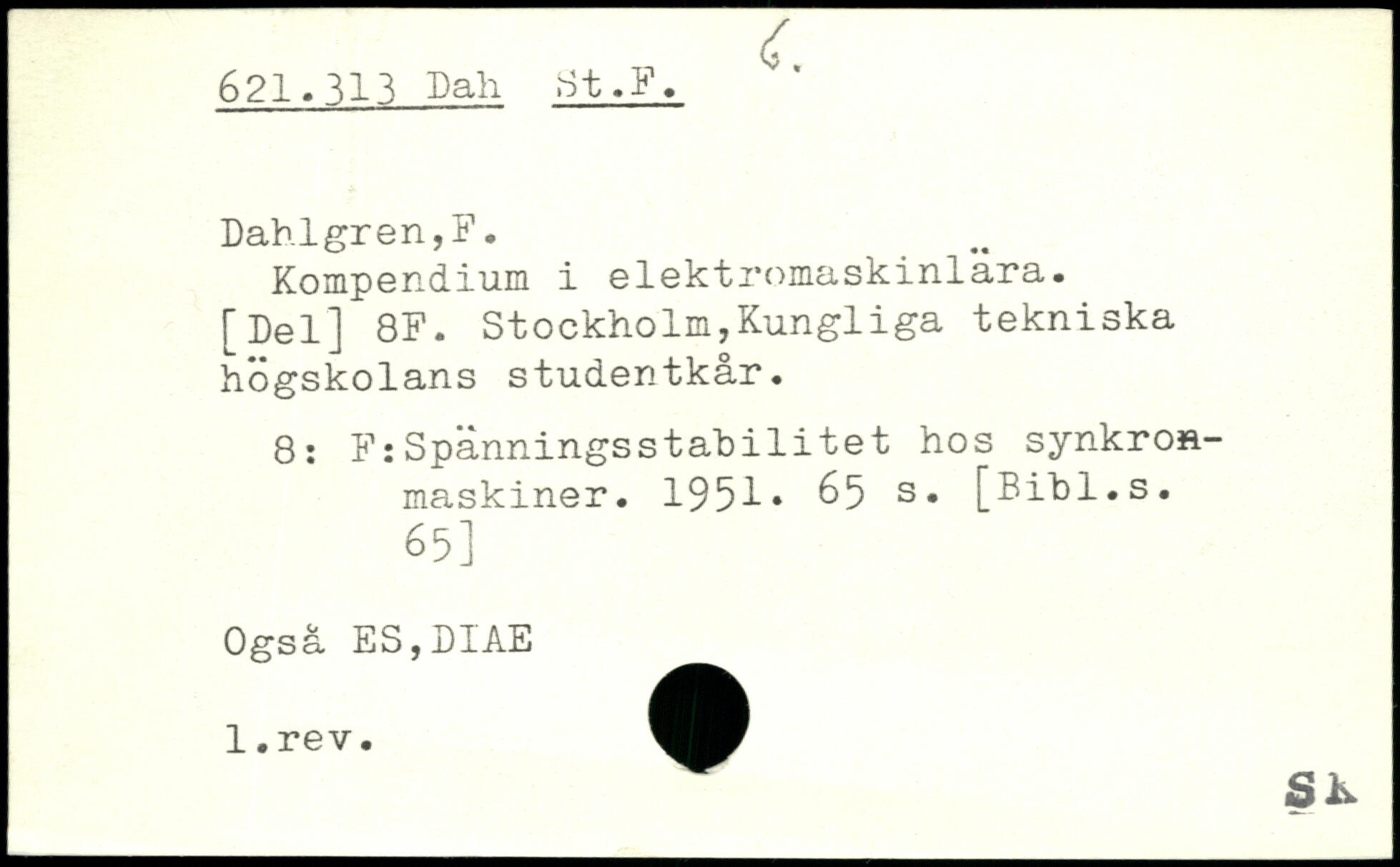 Kompendium i elektromaskinlära. [Del] 8F. Stockholm,Kungliga tekniska högskolans studentkår. 8: FiSpänningsstahilitet hos synkron-maskiner. 1951