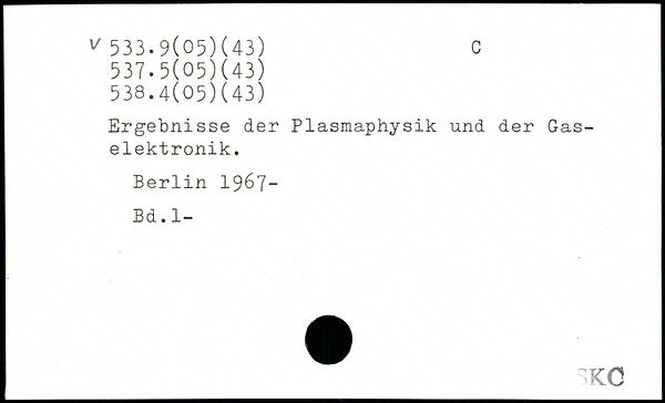 Ergebnisse der Plasmaphysik und der Gaselektronik.