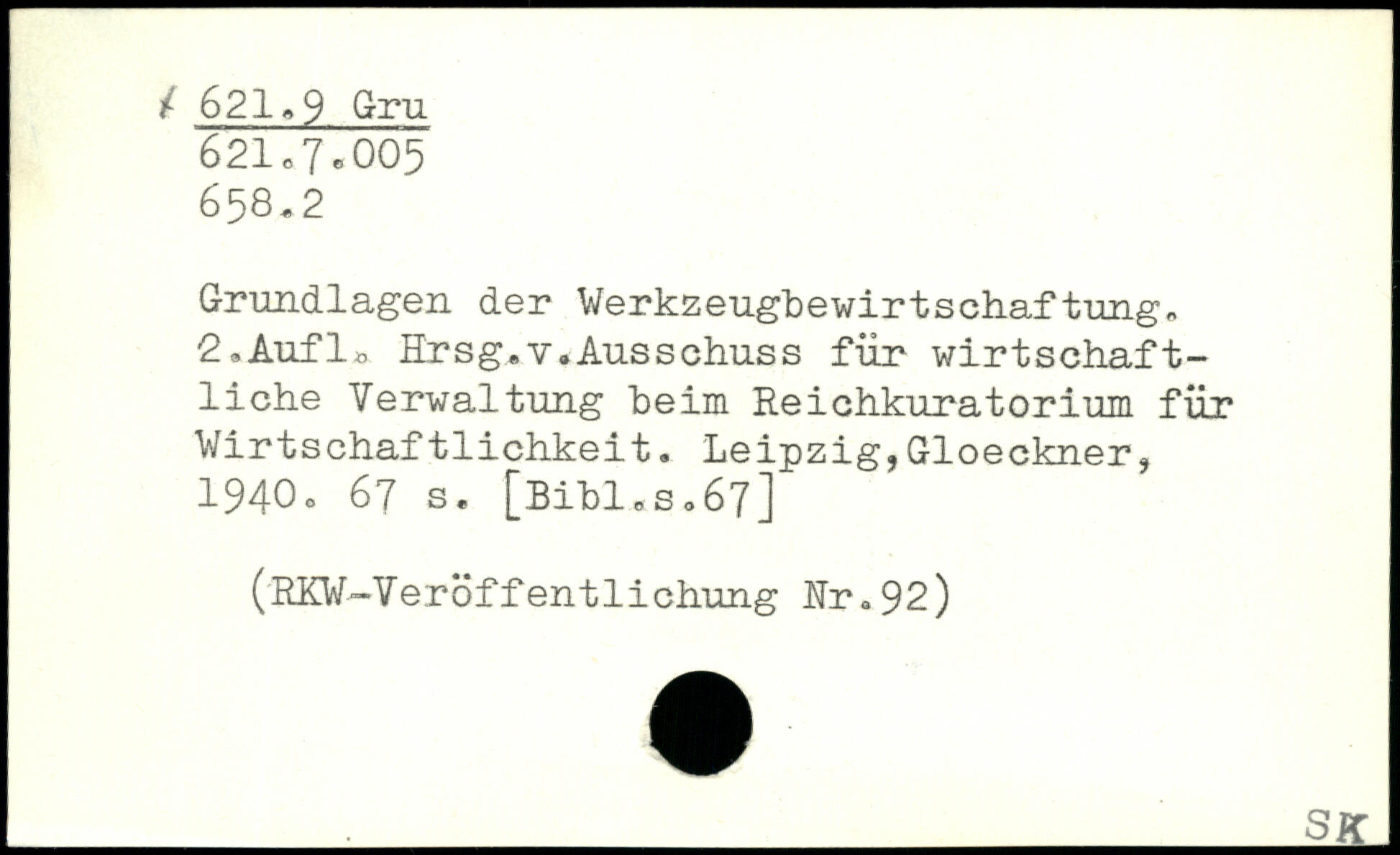 Grundlagen der Werkzeugbewirtschaftung, 2,Aufl, Hrsg.v.Ausschuss für wirtschaftliche Verwaltung heim Reichkuratorium für Wirtschaftlichkeit.