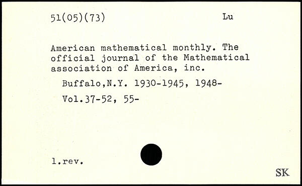 American mathematical monthly. The official journal of the Mathematical association of America, inc. Buffalo,N.Y. 1930-1945, 1948-