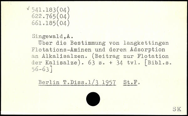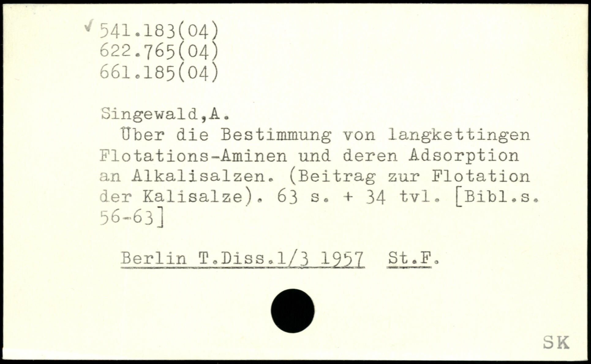 Uber die Bestimmung von langkettingen Flotations-Aminen und deren Adsorption an Alkalisalzen. (Beitrag zur Flotation der Kalisalze).