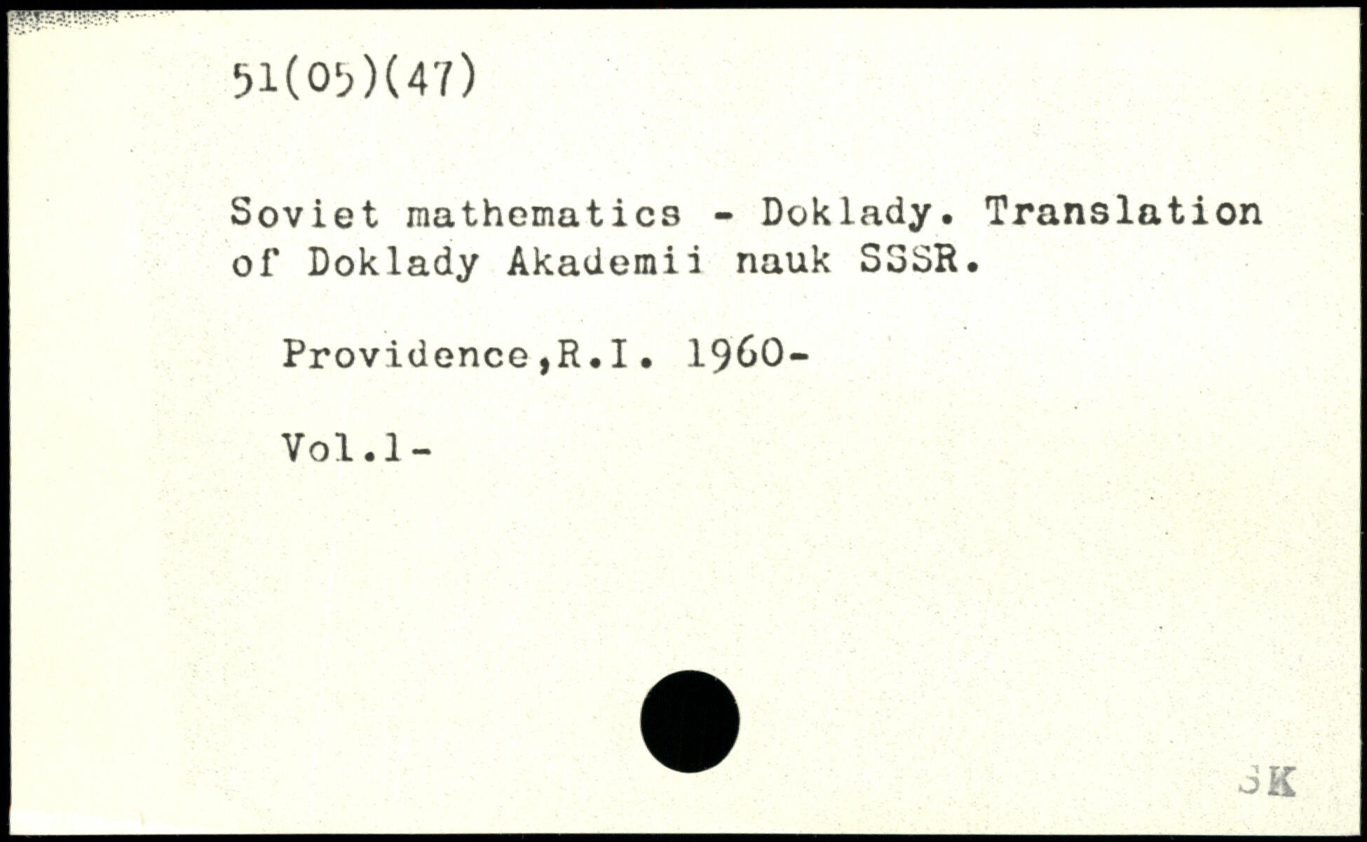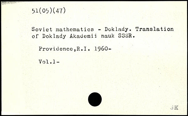 Soviet mathematics - Doklady. Translation of Doklady Akademii nauk S3SR. Providence,R.I. 1960- Vol.l-