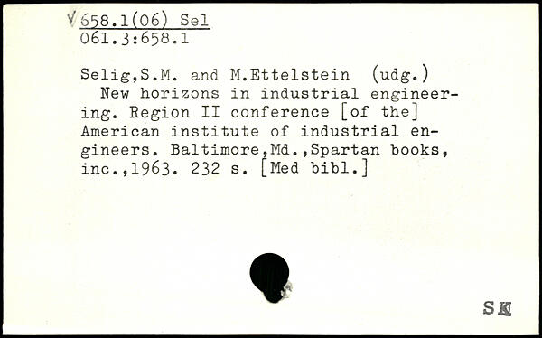New horizons in industrial engineering. Region II conference [of the] American institute of industrial engineers. Baltimore,Md.,Spartan books, inc.,1963.