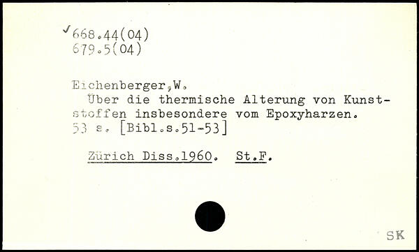Über die thermische Alterung von Kunststoffen insbesondere vom Epoxyharzen. 53 £ f