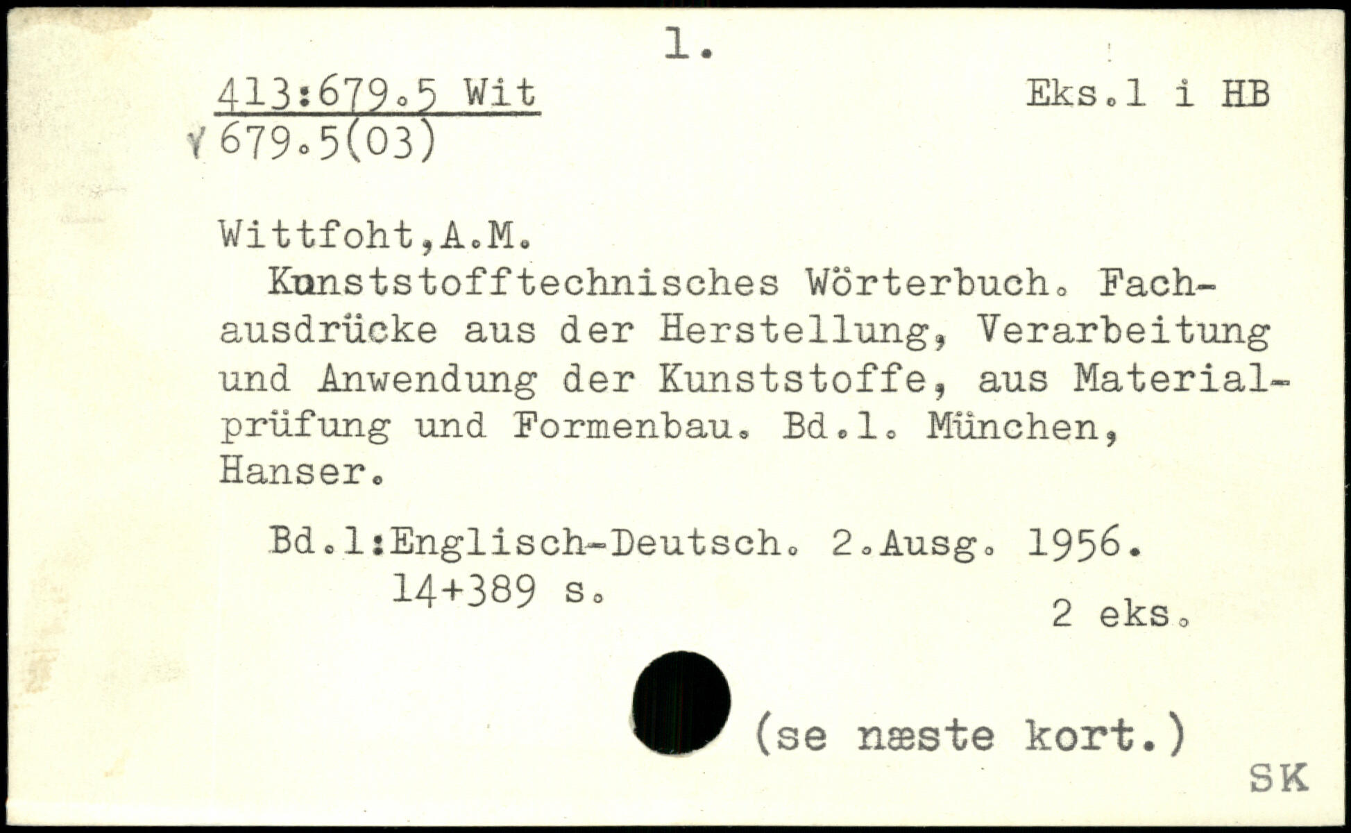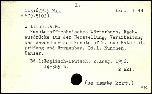 Kunststofftechnisches Wörterbuch, Fachausdrücke aus der Herstellung, Verarbeitung und Anwendung der Kunststoffe, aus Materialprüfung und Formenbau. Bd.l, München, Hanser. Bd.IsEnglisch-Deutscho 2=Ausgo 1956.