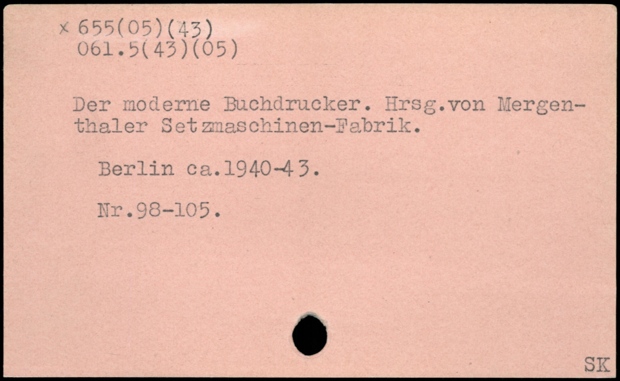 Der moderne Buchdrucker. Hrsg.von Mergenthal er Set zrnas chinen-B abr ik. Berlin ca. 1940-43. Nr.98-105.