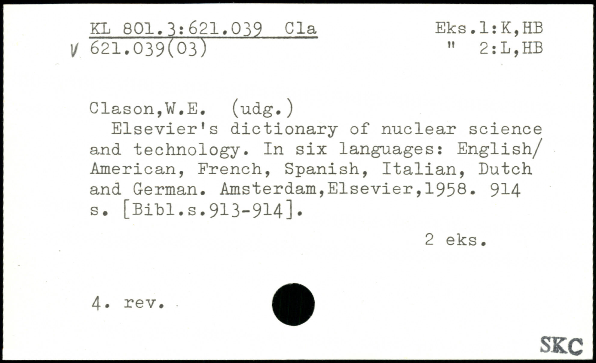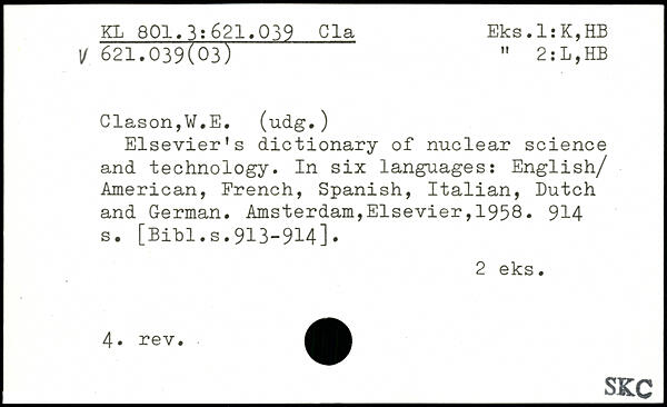 Elsevier's dictionary of nuclear science and technology. In six languages: English/ American, French, Spanish, Italian, Dutch and German.