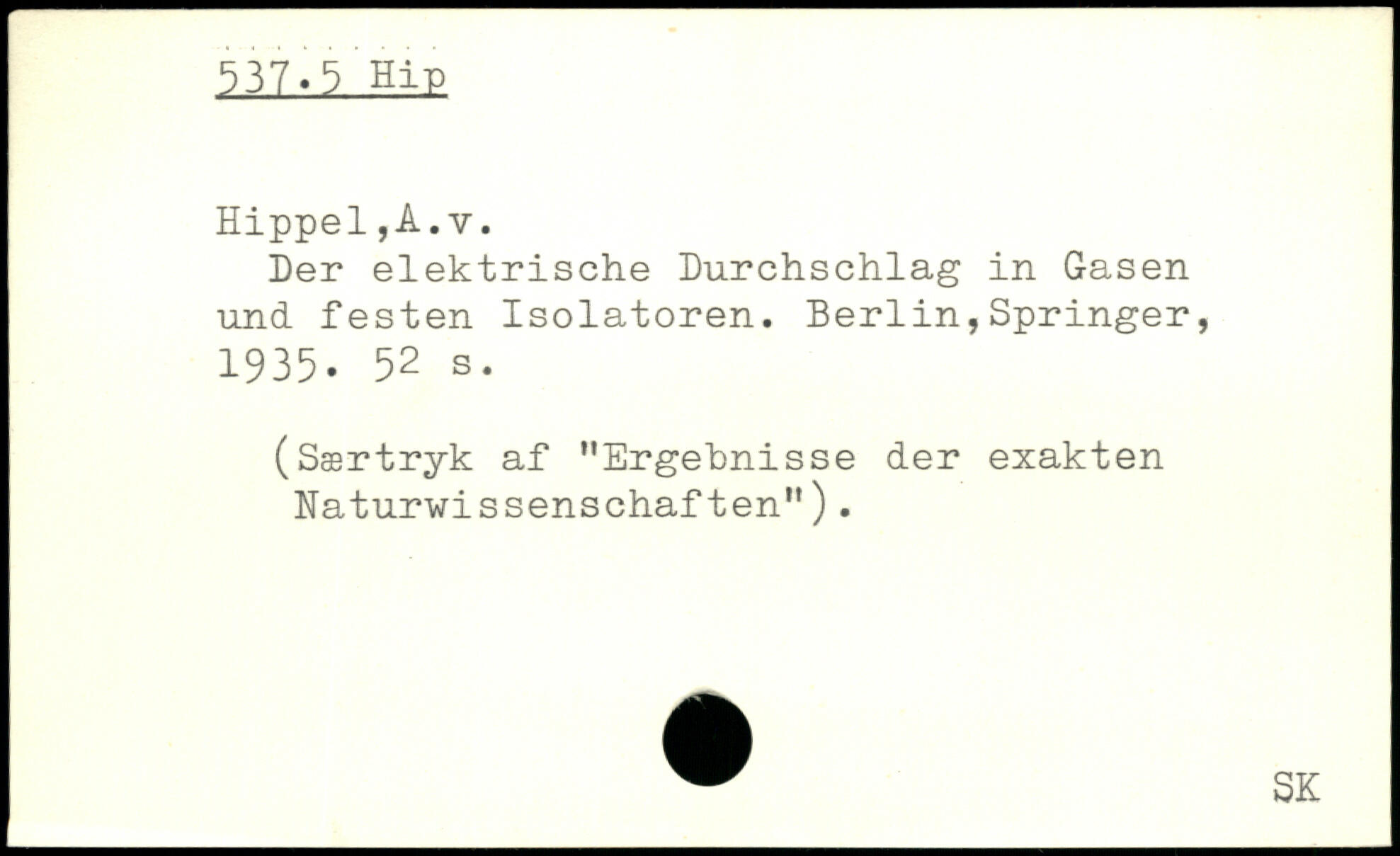 Der elektrische Durchschlag in Gasen und festen Isolatoren.