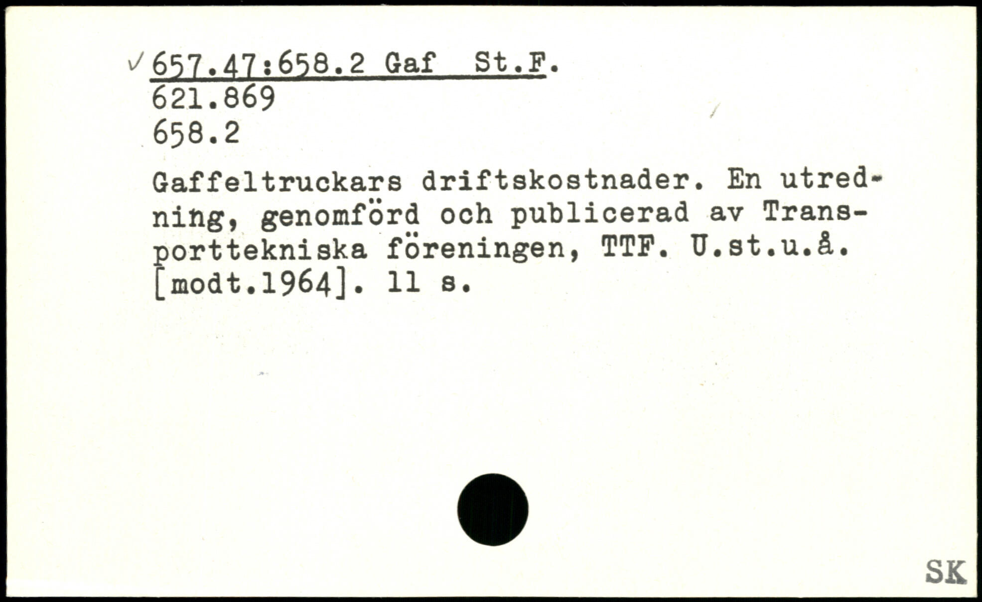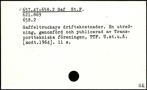 Gaffeltruckars driftskostnader. En utred. ning, genomförd och publicerad av Transporttekniska föreningen, TTP. U.st.u.å.