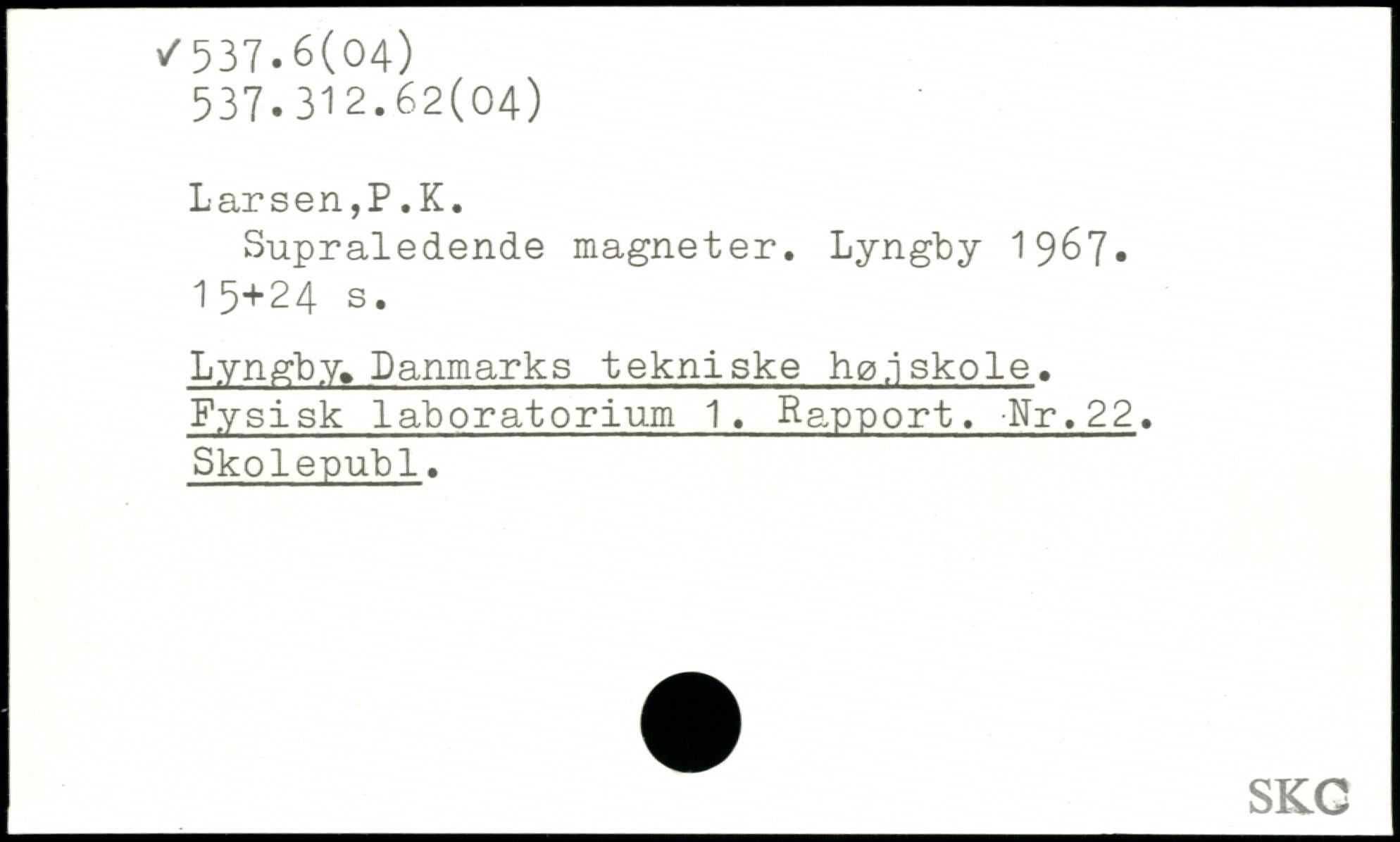 Supraledende magneter. Lyngby 1967