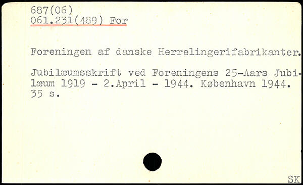 Poreningen af danske Herrelingerifabrikanter. Jubilæumsskrift ved Poreningens 25-Aars Jubilæum 1919 - 2.April - 1944.