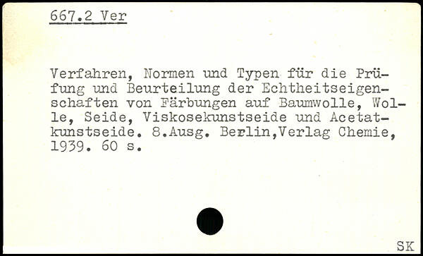 Verfahren, Normen und Typen für die Prüfung und Beurteilung der Echtheitseigenschaften von Färbungen auf Baumwolle, Wolle, Seide, Viskosekunstseide und Acetatkunstseide. 8.Ausg.
