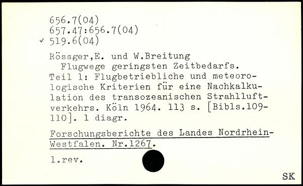 Flugwege geringsten Zeitbedarfs. Teil 1: Flugbetriebliche und meteorologische Kriterien für eine Nachkalkulation des transozeanischen Strahlluftverkehrs.