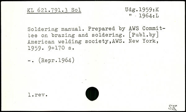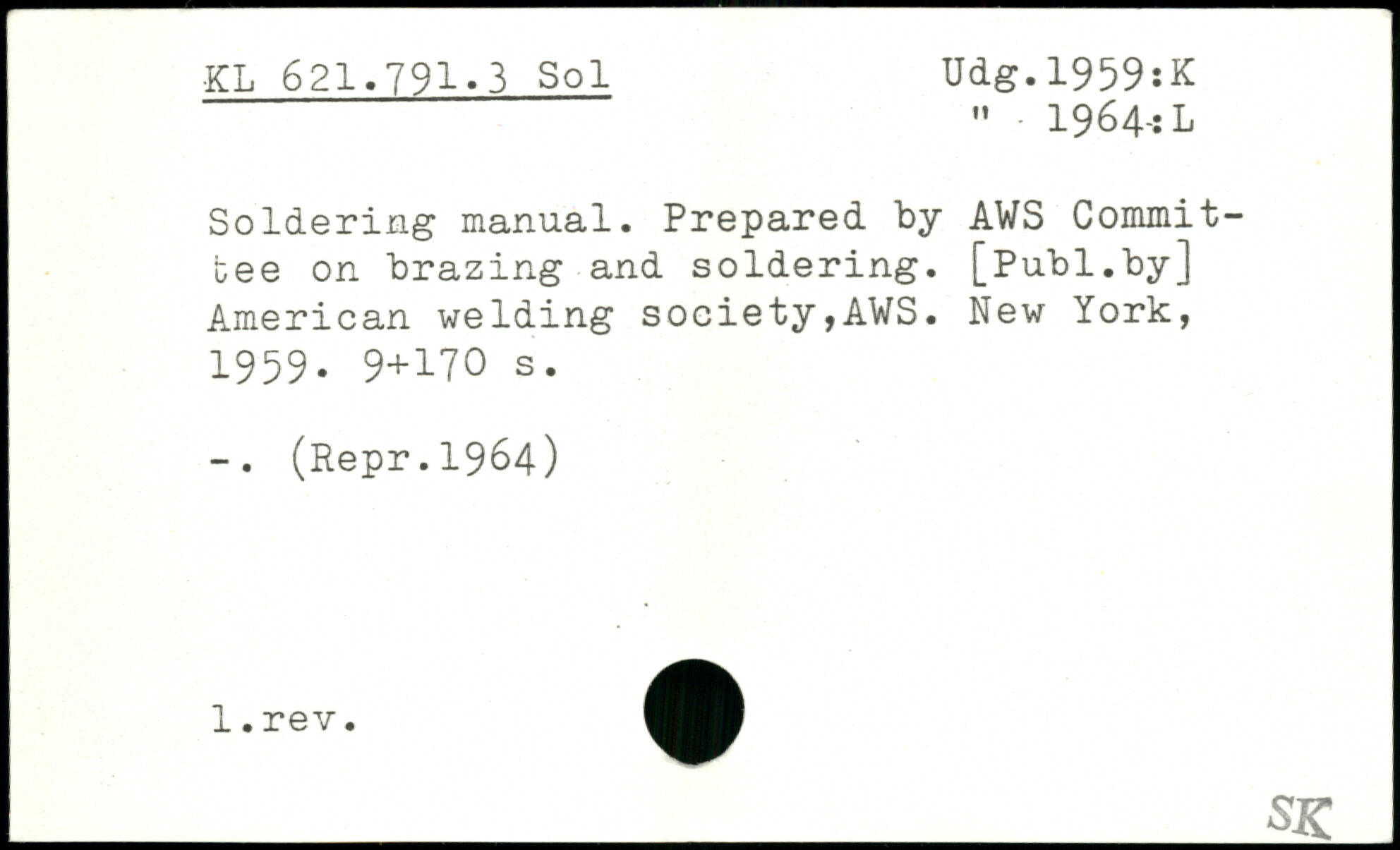 " 1964-: L Soldering manual. Prepared by AWS Committee on brazing and soldering.
