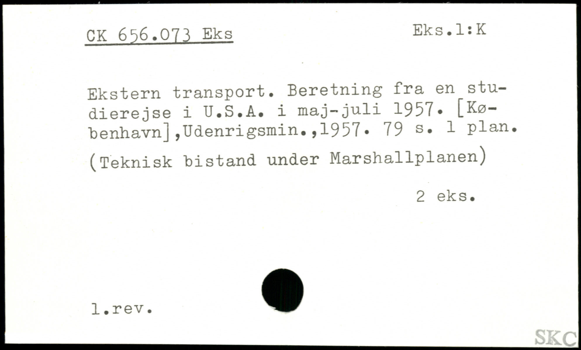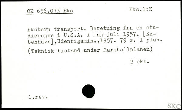 Ekstern transport. Beretning fra en studierejse i U.S.A. i maj-juli 1957, [København] ,Udenrigsmin. , 1957.