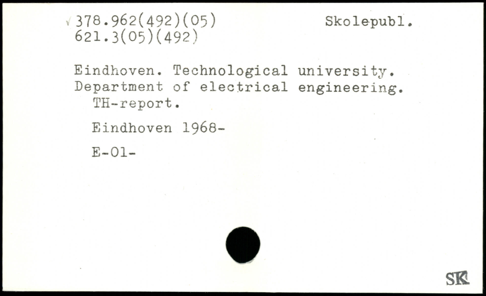Eindhoven. Technological university. Department of electrical engineering. TH-report. Eindhoven 1968-