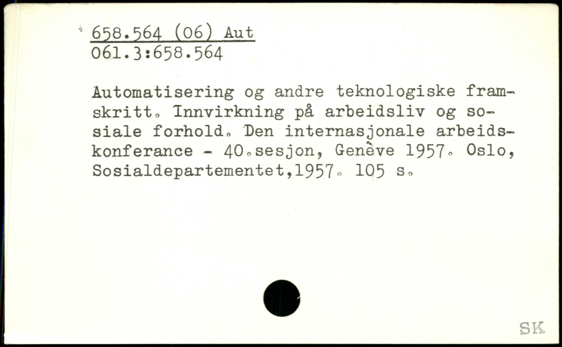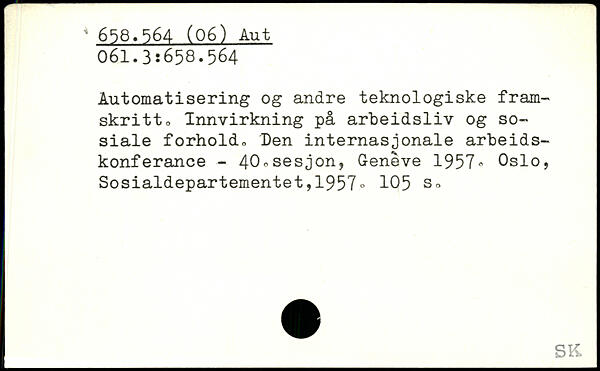 Automatisering og andre teknologiske fram-skritto Innvirkning på arbeidsliv og so-siale forhold, Den internasjonale arbeids-konferance - 40.sesjon, Geneve 1957