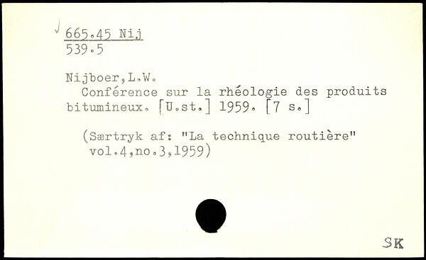 Conférence sur la rhéologie des produits bitumineuxo [U.st.] 1959, [7 (Særtryk af: "La technique routière"