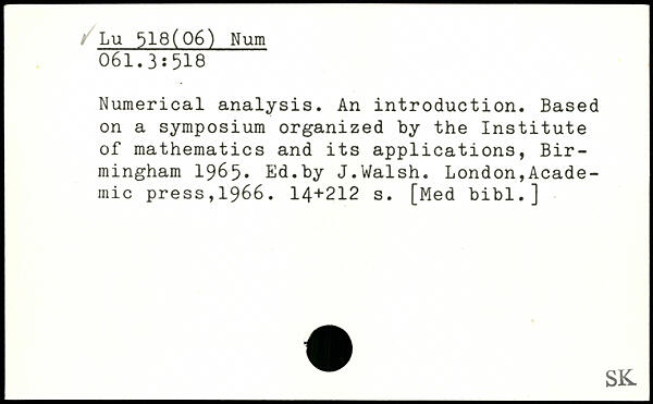 Numerical analysis. An introduction. Based on a symposium organized by the Institute of mathematics and its applications, Birmingham 1965. Ed.by J.Walsh.
