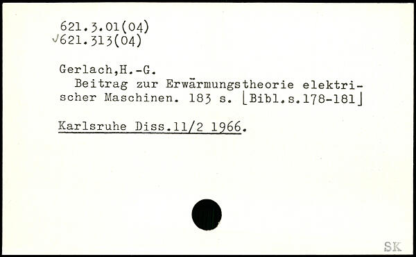 Beitrag zur Erwärmungstheorie elektrischer Maschinen.