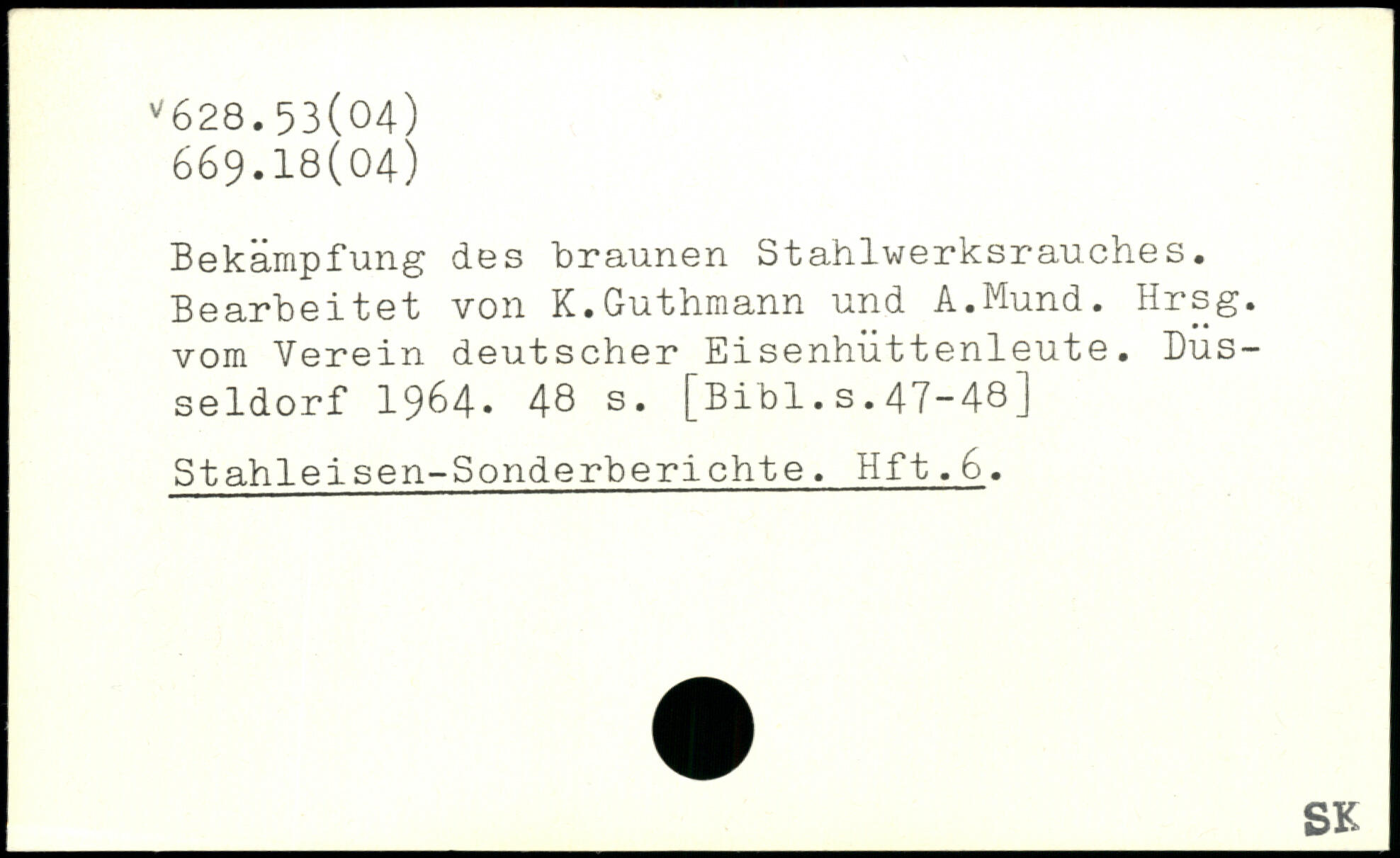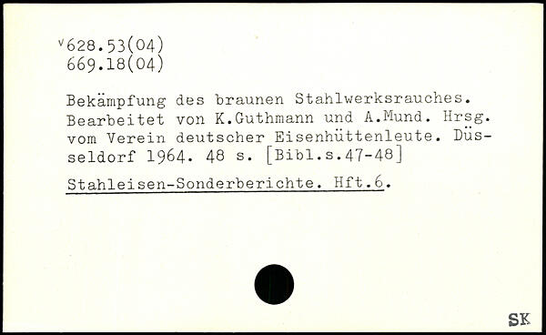 Bekämpfung des braunen Stahlwerksrauches. Bearbeitet von K.Guthmann und A.Mund. Hrsg, vom Verein deutscher Eisenhüttenleute. Düsseldorf 1964.