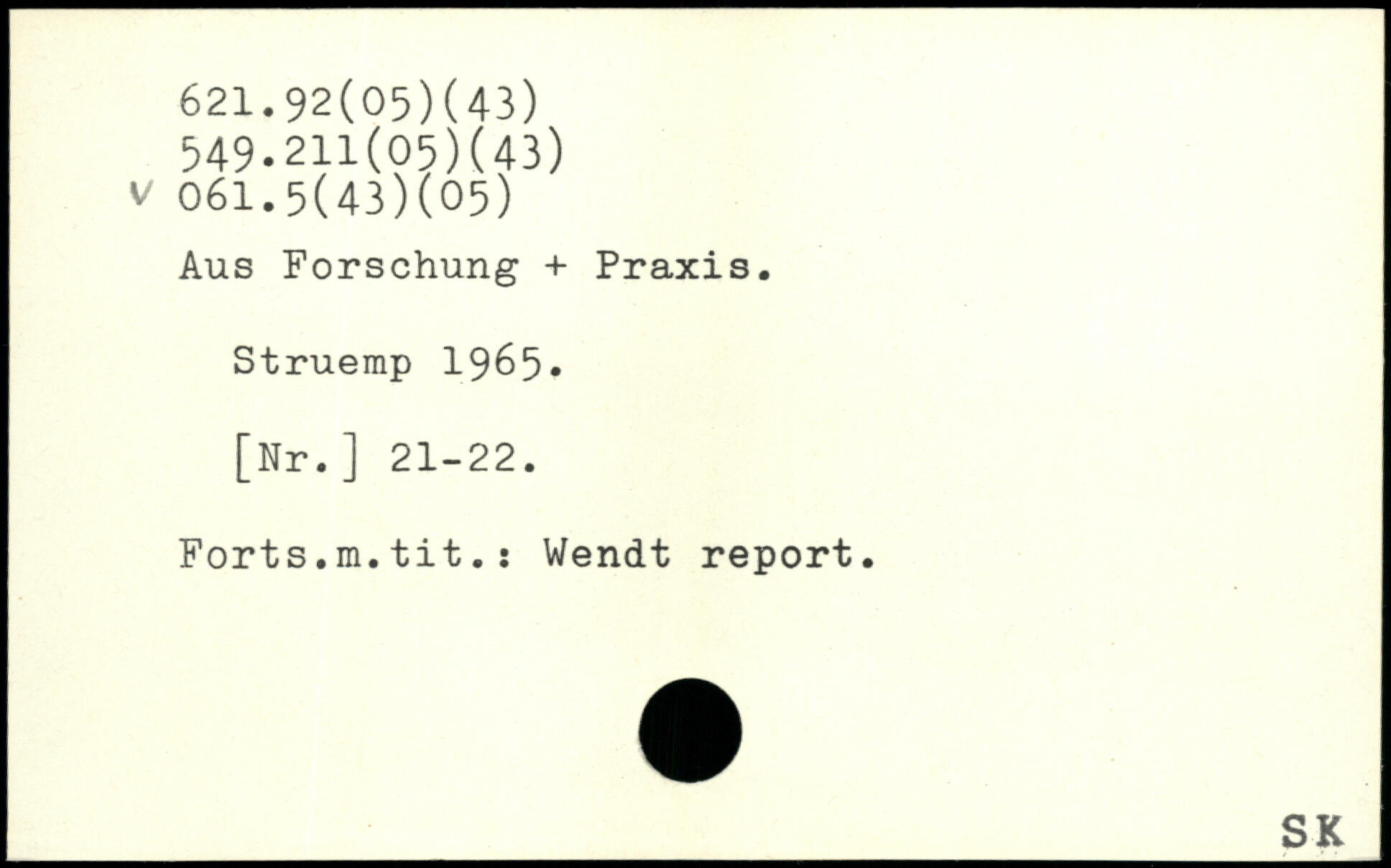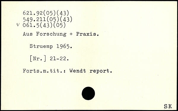 Aus Forschung + Praxis. Struemp 1965. [Nr.] 21-22. Forts.m.tit.: Wendt report.