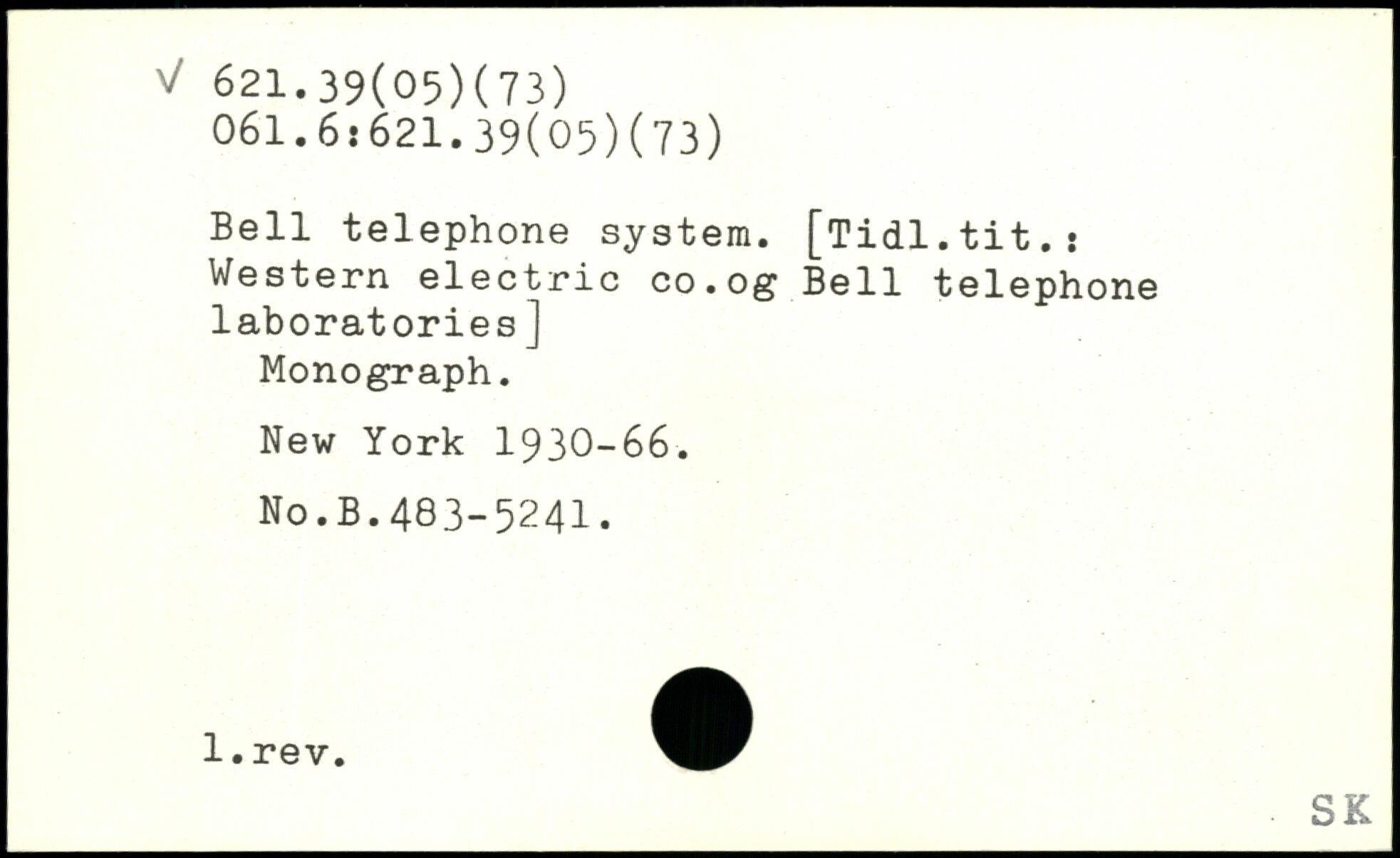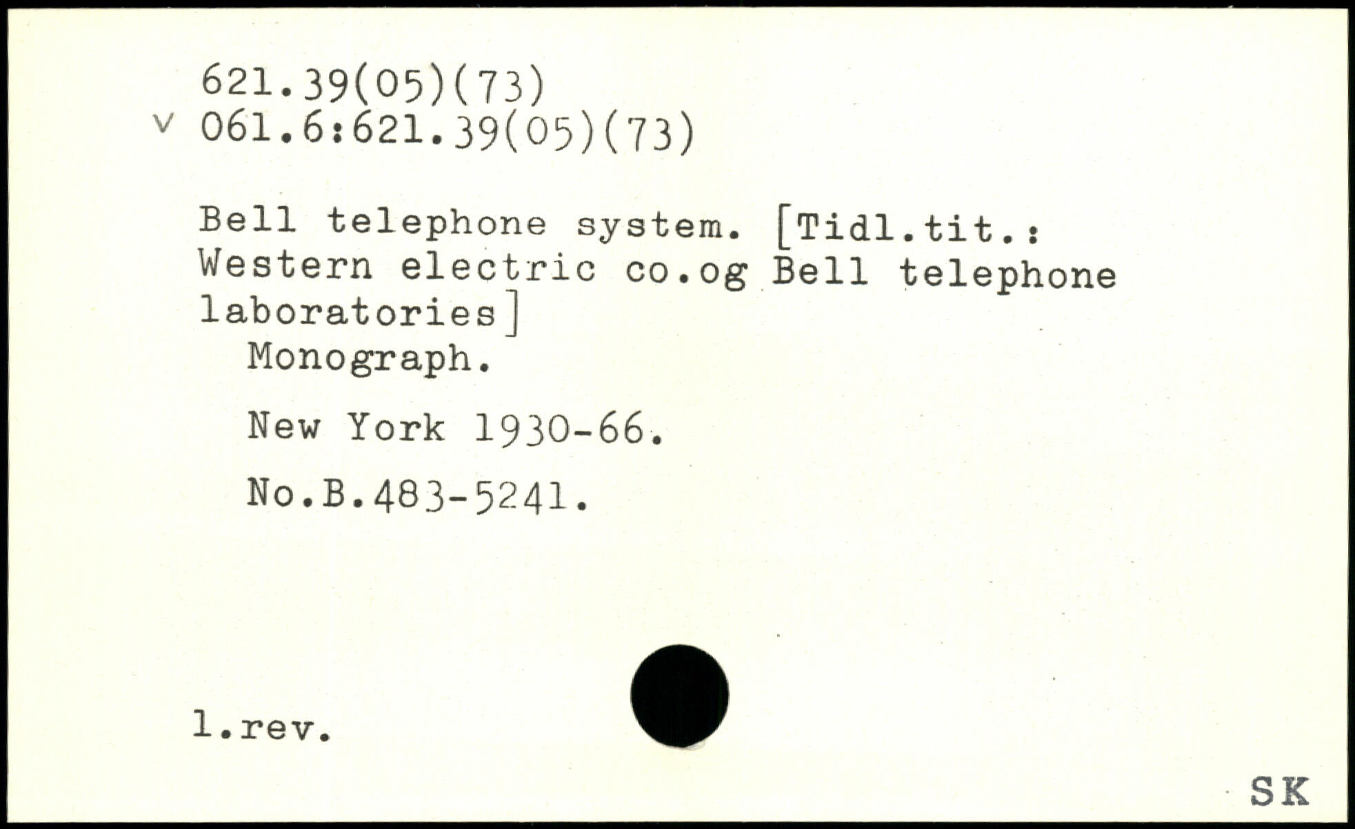 Bell telephone system. [Tidl.tit.: Western electric co.og Bell telephone laboratories] Monograph.