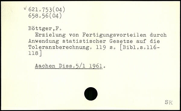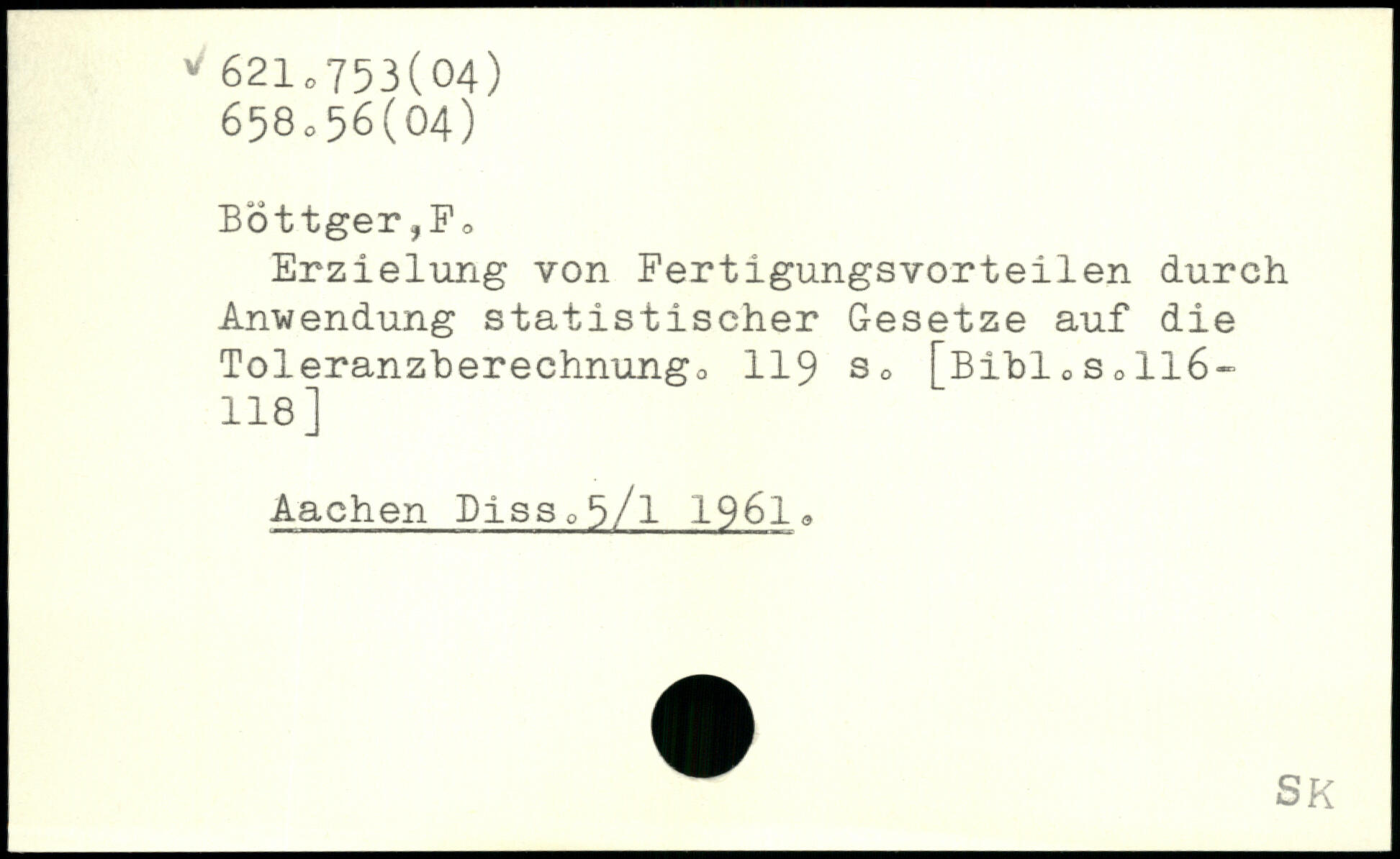 Erzielung von Eertigungsvorteilen durch Anwendung statistischer Gesetze auf die Toleranzberechnungo
