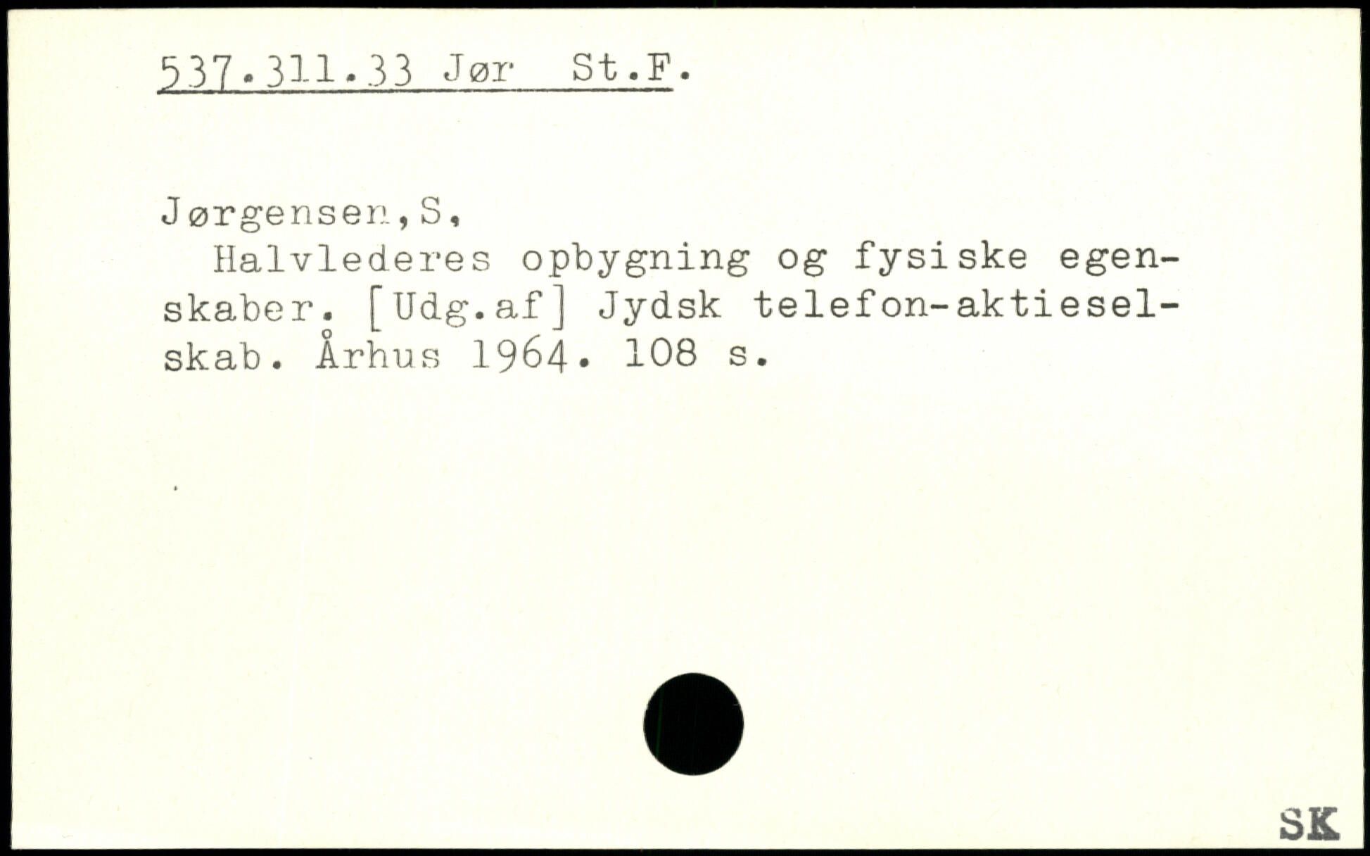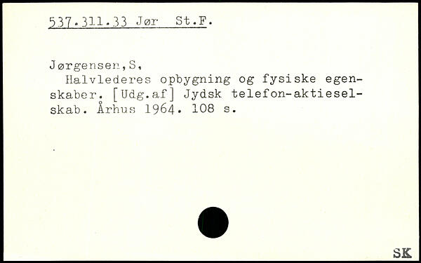 Halvlederes opbygning og fysiske egenskaber. [Udg.af] Jydsk telefon-aktieselskab. Århus 1964.