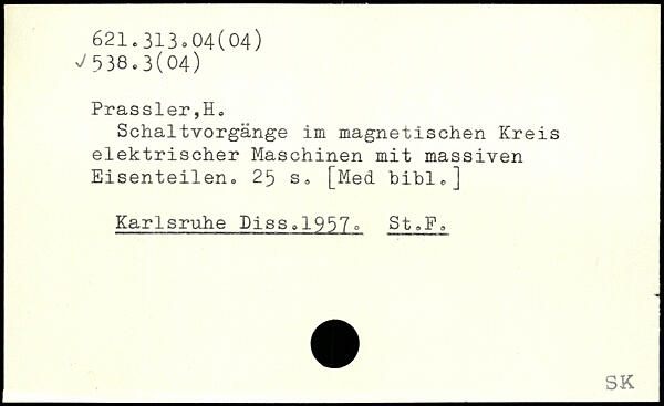 Schaltvorgänge im magnetischen Kreis elektrischer Maschinen mit massiven Eisenteilen0