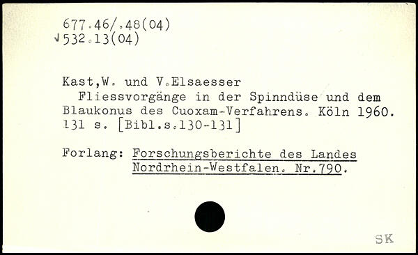 Kast,W, und Vr,Elsaesser Fliessvorgänge in der Spinndüse und dem Blaukonus des Cuoxam-Verfahrens.